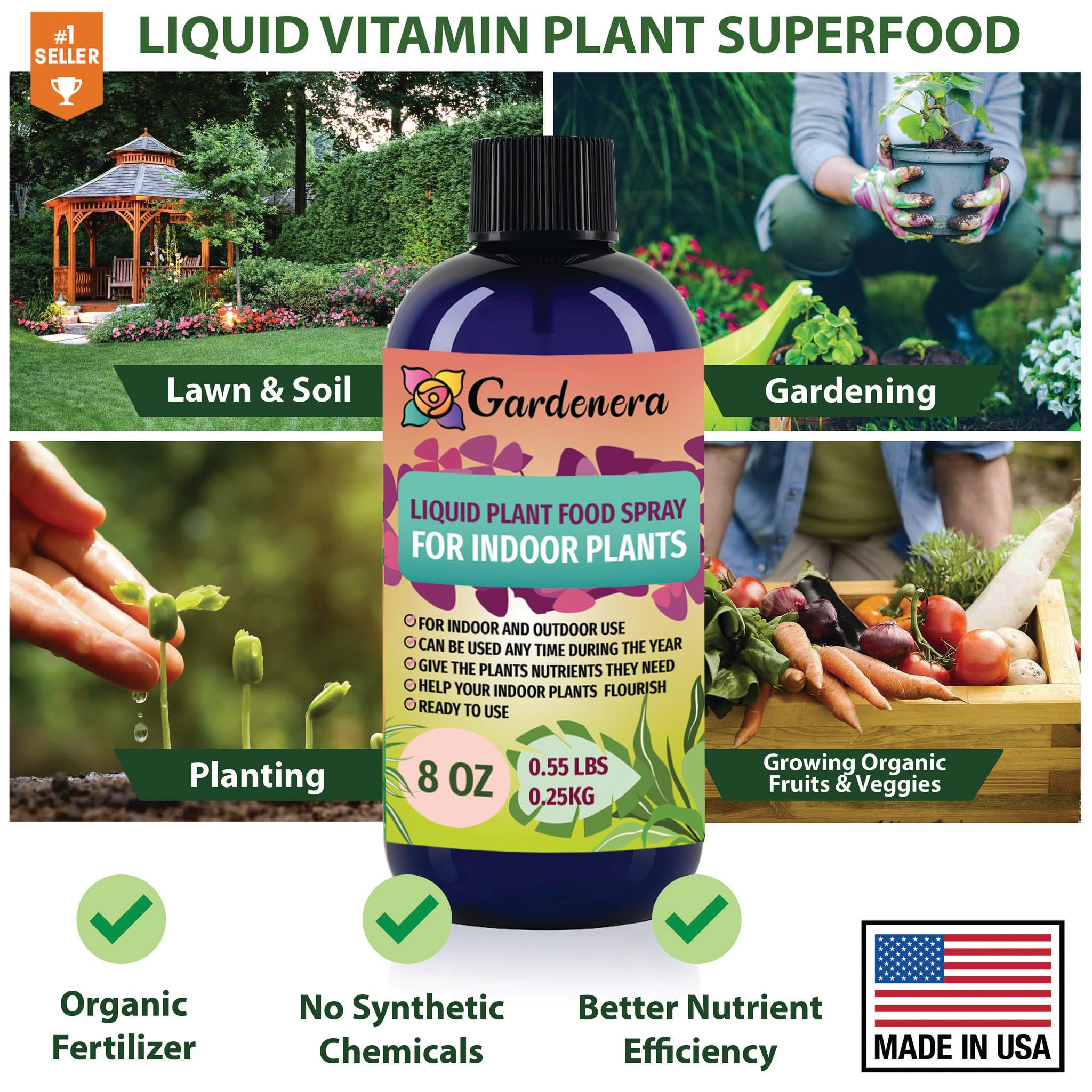 🌿 ALL-PURPOSE PLANT LIQUID VITAMIN SUPERFOOD: Gardenera Organic Superfood Concentrate - your go-to all-purpose plant liquid vitamin superfood suitable for all soils and growing media, including hydroponics, semi-hydro, leca, vivariums with reptiles, terrariums, water gardens, fish tanks, flowers, and more.