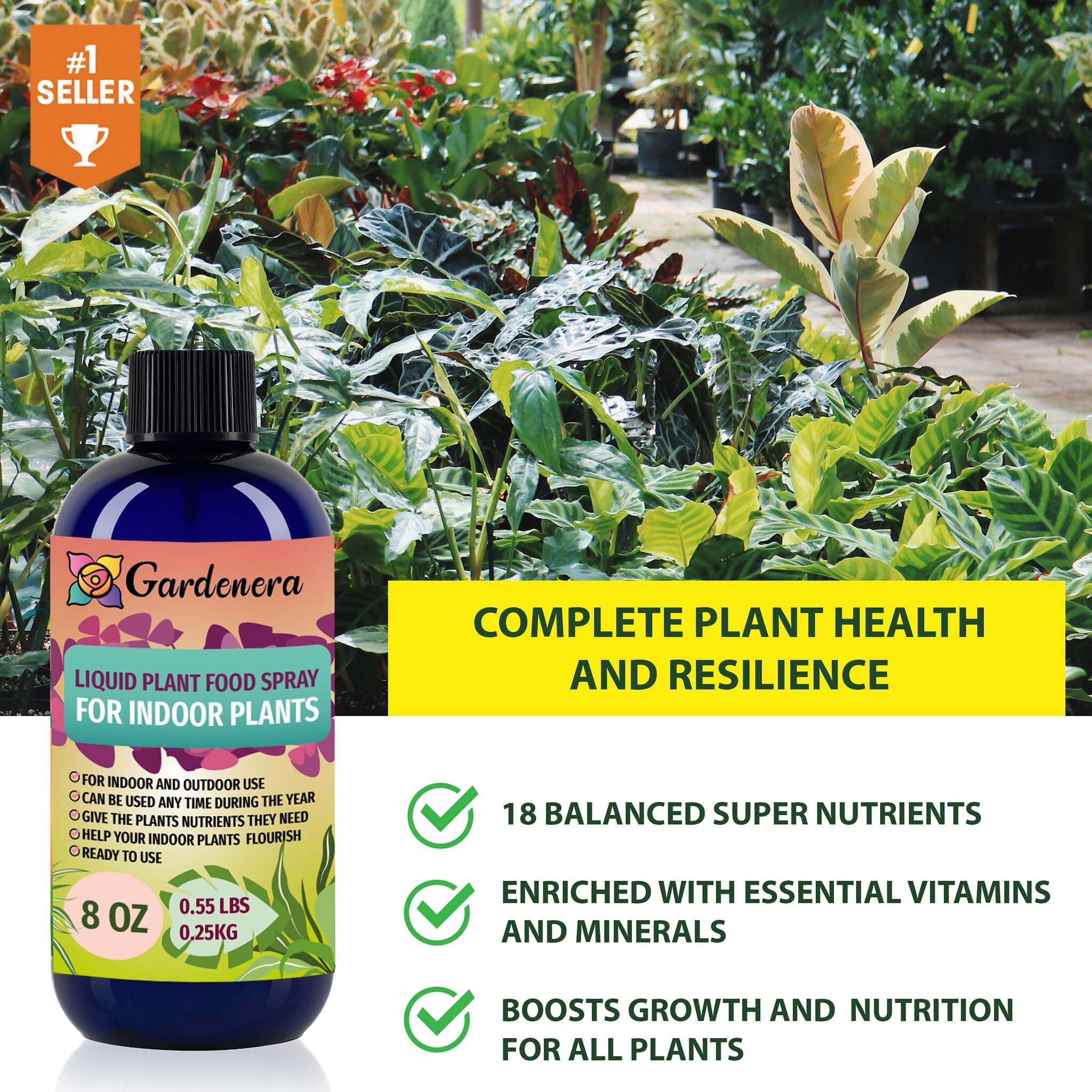 Introducing Gardenera Organic Superfood Concentrate – your essential superfood concentrate, designed to nurture and enhance the health of all your beloved plants. This unique blend delivers essential nutrients for vibrant foliage, robust growth, and stunning blooms, making it an indispensable addition to your indoor and outdoor plant care routine. 🌿 WIDELY RECOGNIZED - The Gardenera fertilizer concentrate is celebrated among gardeners and plant enthusiasts for its impressive results with a wide variety of plants. Whether you have flowering plants, foliage plants, or a mix of both, this superfood concentrate is engineered for their specific nutritional requirements. 🌿 PROMOTE VIBRANT FOLIAGE & ROBUST GROWTH - Our precision-crafted concentrate is infused with a unique NPK formulation of 1-0.03-13, fortified with 18 essential vitamins and minerals, micro-fungi, and bio-organisms. This blend is designed to nourish all your plants, encouraging vibrant foliage, robust growth, and stunning blooms. 💧 CONCENTRATED NUTRITION - With Gardenera Organic Superfood Concentrate, you have the power to customize your plant care. For regular watering, simply mix 2 tablespoons of concentrate in 1 gallon of water. Water your plants as usual to provide them with the balanced nutrition they need for optimal growth and beauty. 🌱 NPK 1-0.03-13 - Specially formulated for the unique needs of a wide range of plants, our concentrate aids in developing vibrant foliage, robust growth, and stunning blooms, making it suitable for all your gardening needs.