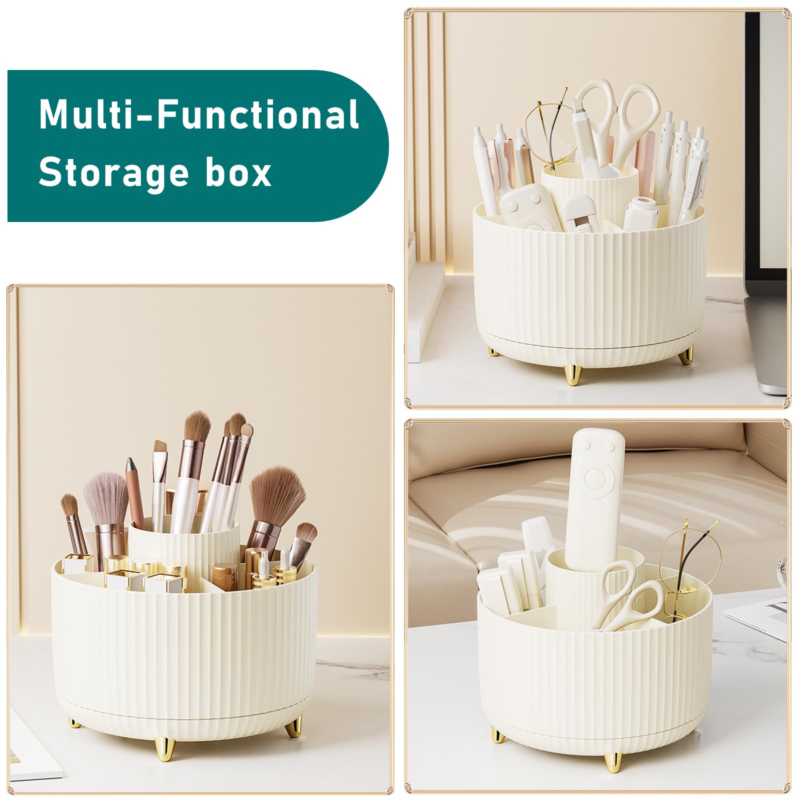 360° Rotation Makeup Brush Holder:This rotating makeup brush organizer can be rotated 360°, you can easily view and get items from all directions, very convenient, the high-quality roulette at the bottom makes the rotation very smooth, stable, and easy to rotate! Simply spin the make up organizer left or right to store or take out your things, this storage organizer allows you to keep all of your things within reach.