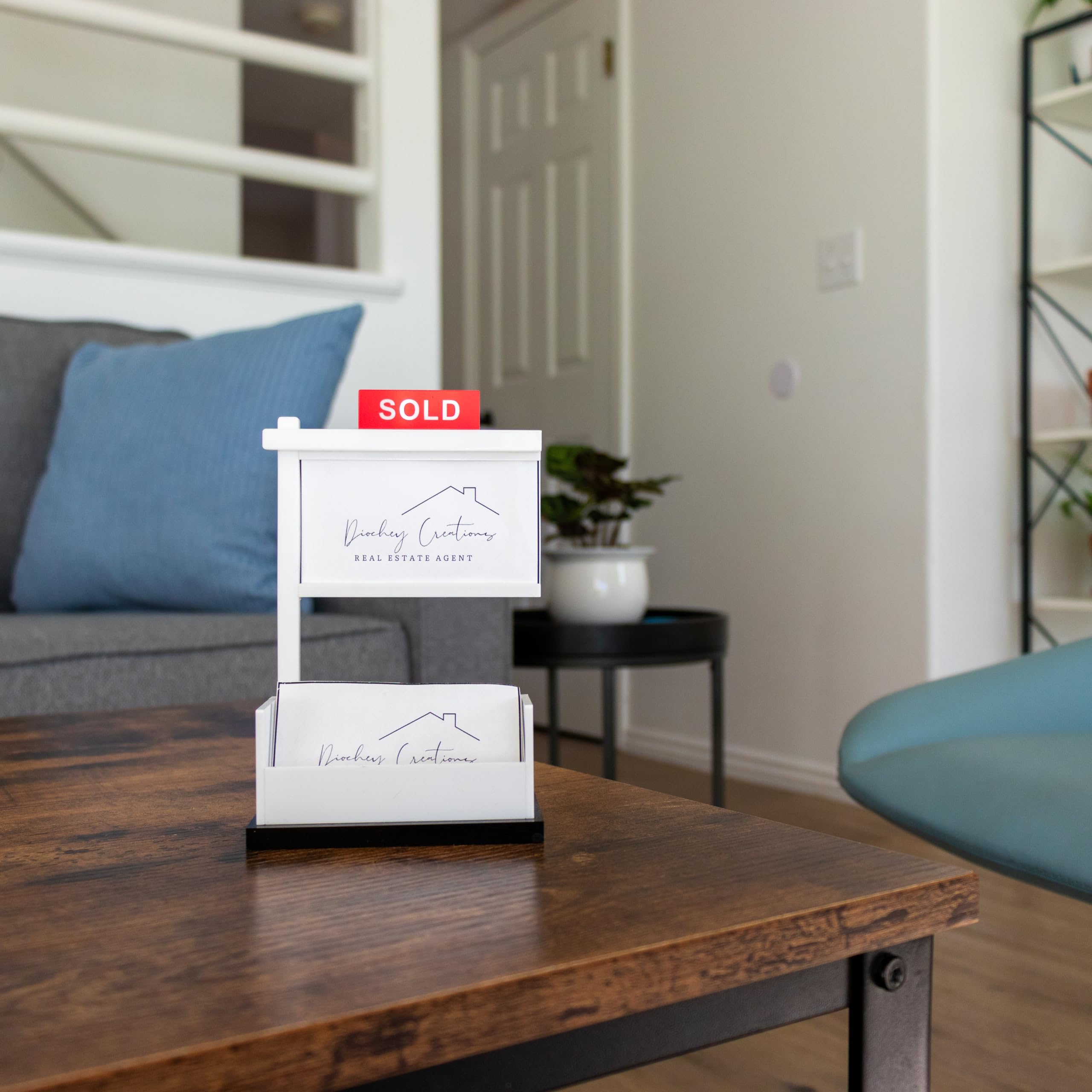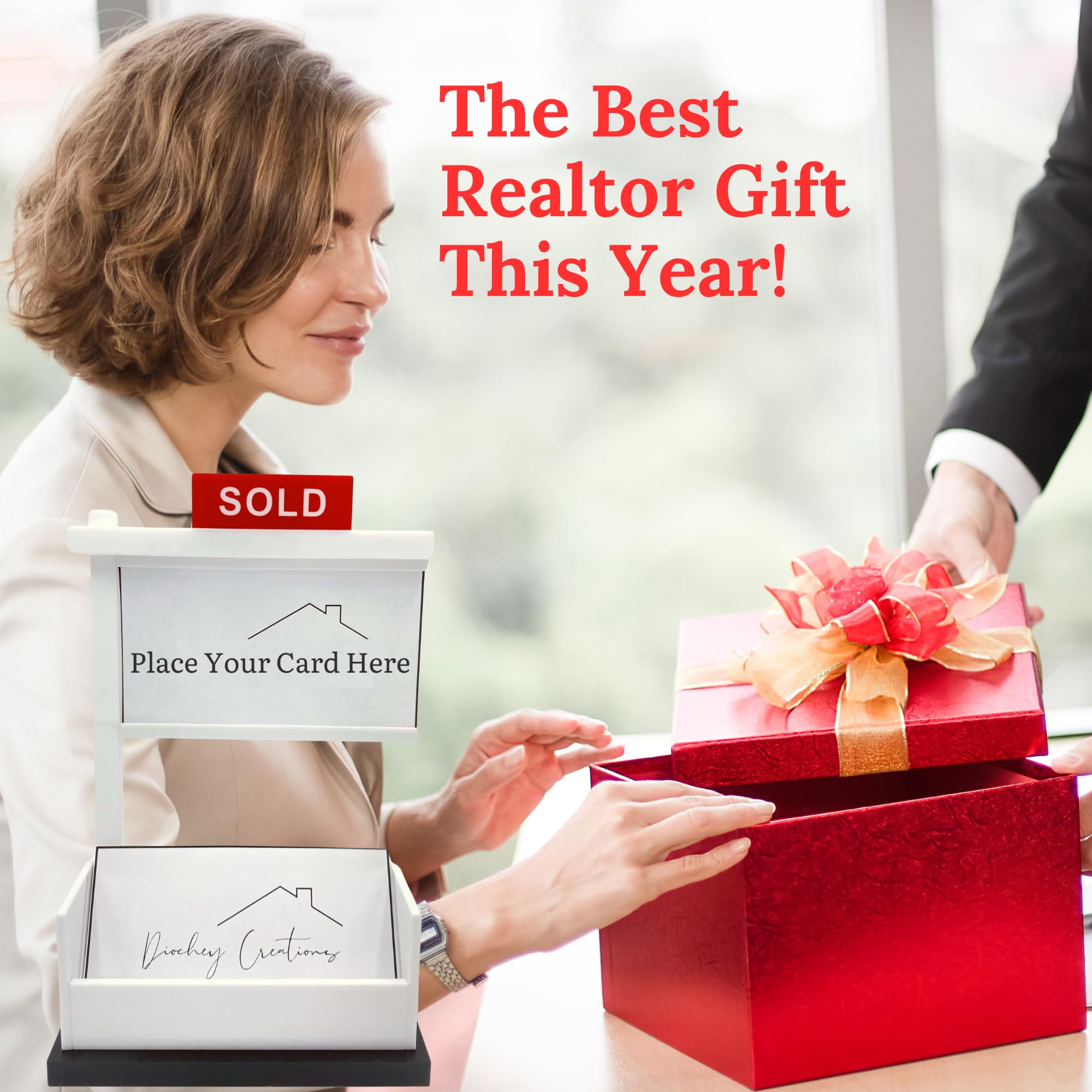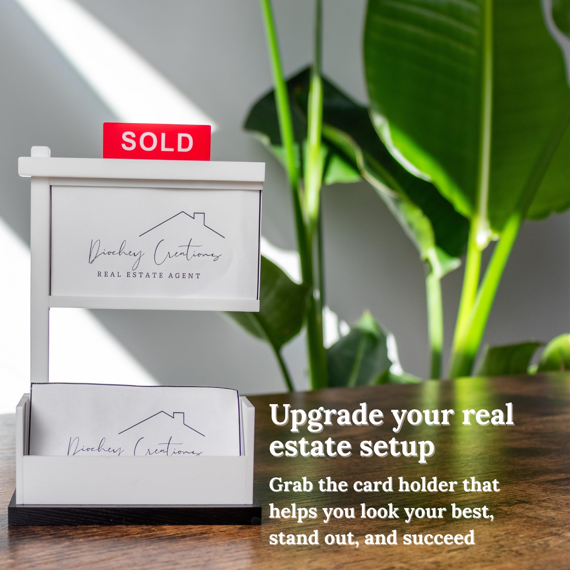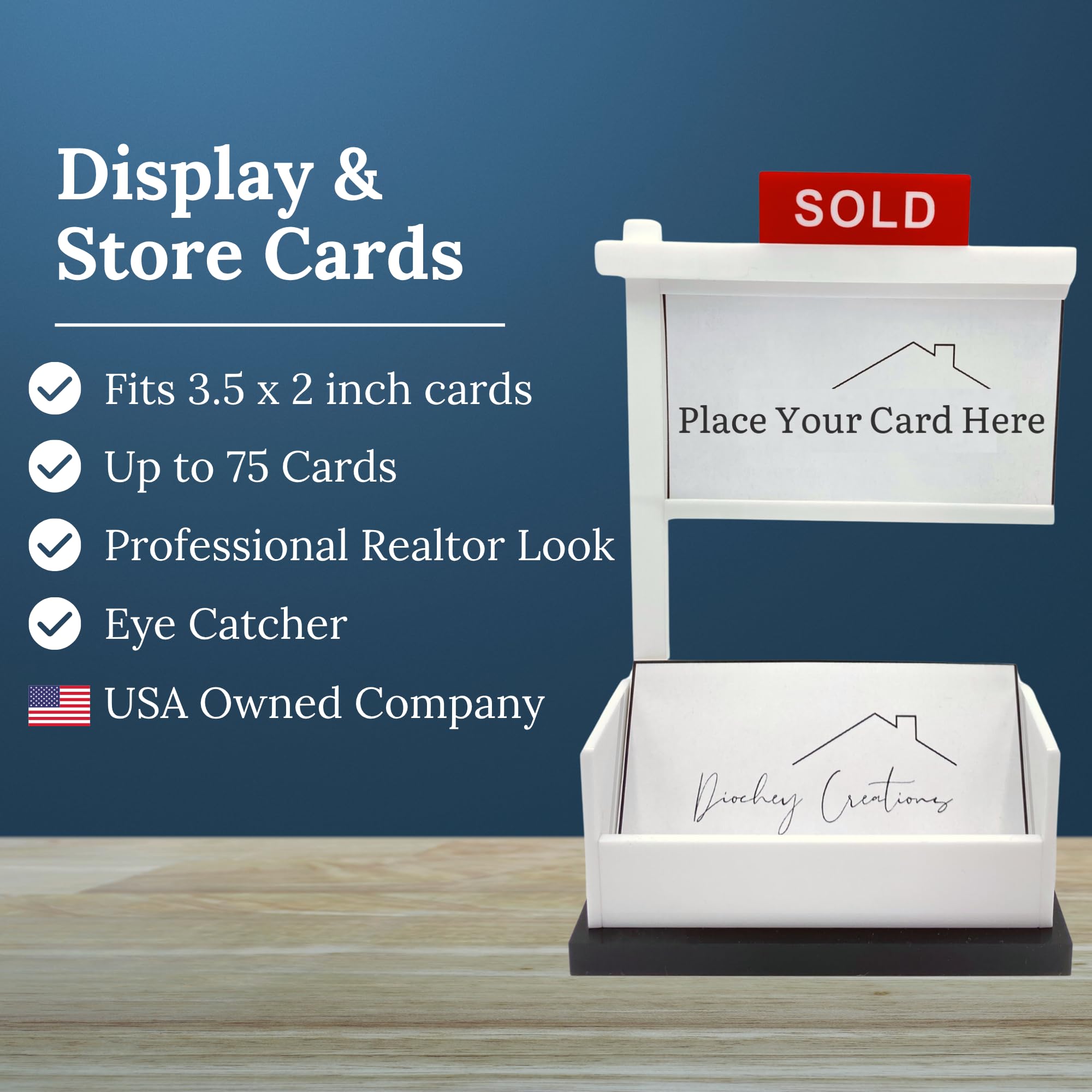 Real Estate Agent Supplies: What better way to display your business card than in a sold sign post, the best gift for a real estate agent is our premium realtor card holder
