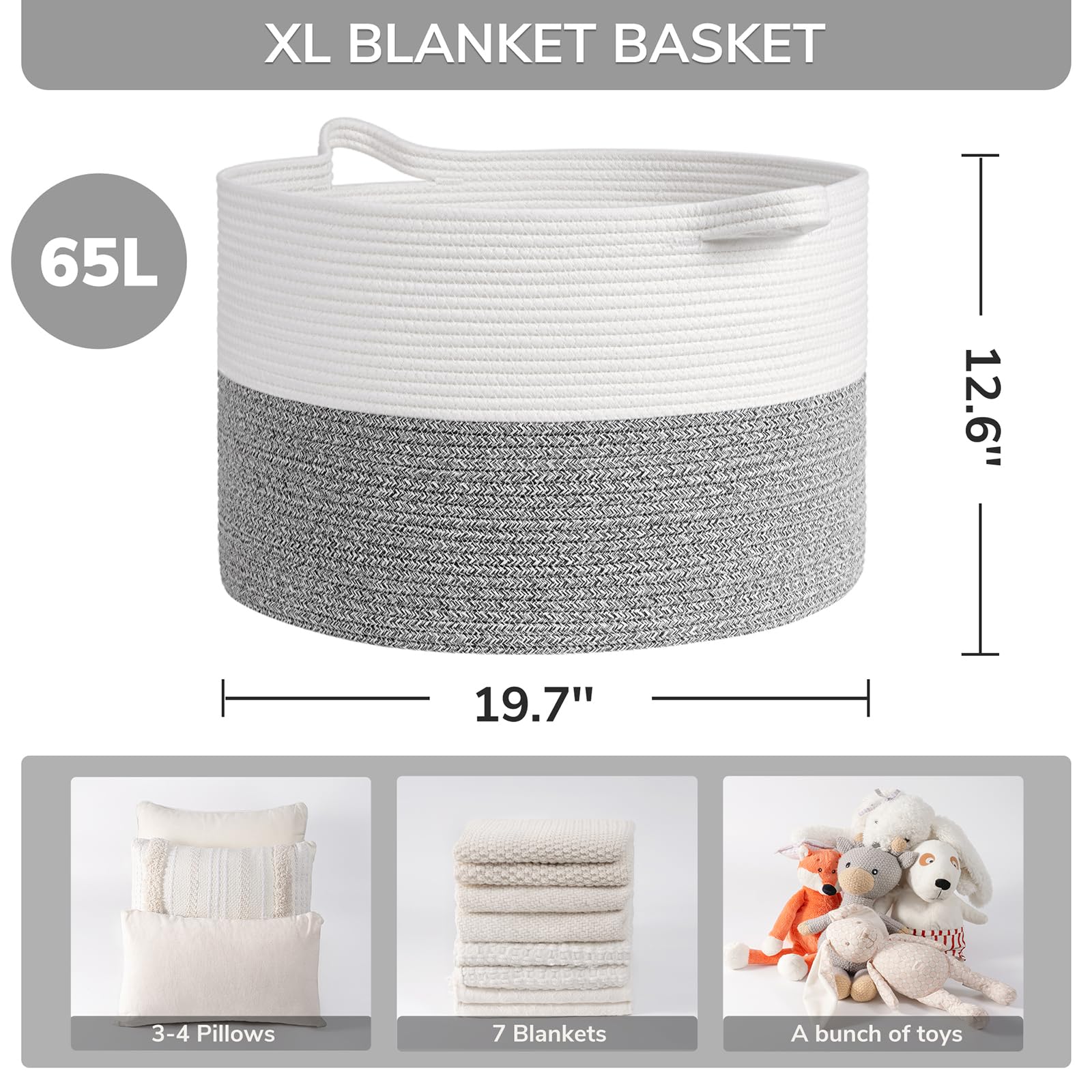 Spacious XL Design. This large storage basket (19.7"D x 12.6"H) provides ample space for pet toys, laundry, and blankets. Perfect basket for home organization.