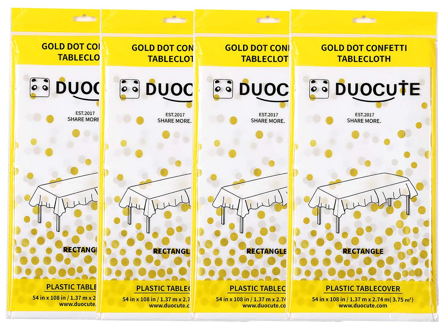 WHITE GOLD FOIL DOT DESIGN: White and gold dot tablecloth is designed to white background and golden foil polka dot pattern. The tablecloth is all enhanced with attractive golden foil dot. Adding an elegant, modern touch to any party. Perfect choice for a white and golden themed party.