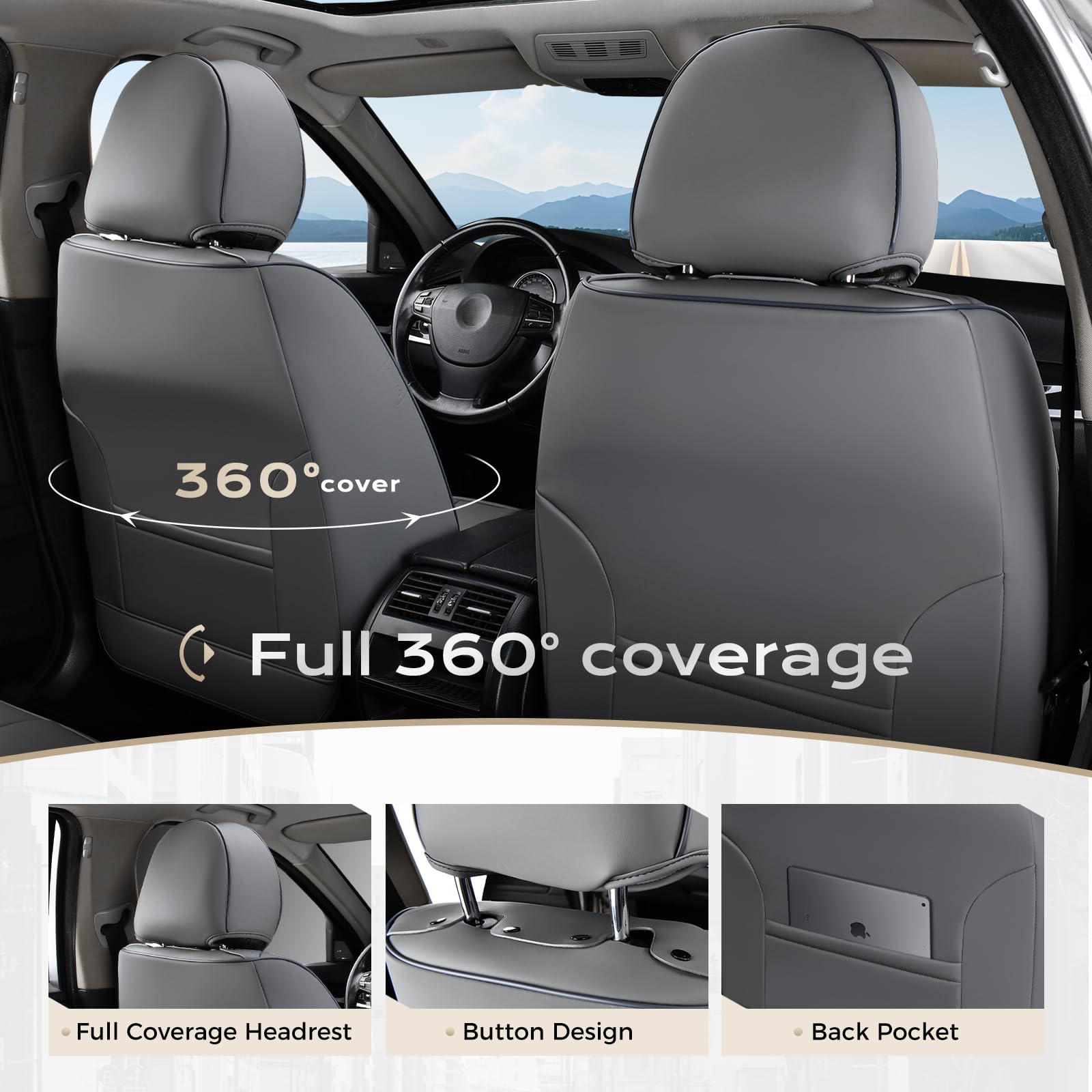 MAINTAIN FUNCTIONALITY - The waterproof seat covers are engineered around the car, keeping the seat's full function and control, such as airbag, seatbelts, armrests and seat adjustments. Separate headrest covers allow easy headrest adjustment for optimal comfort and safety