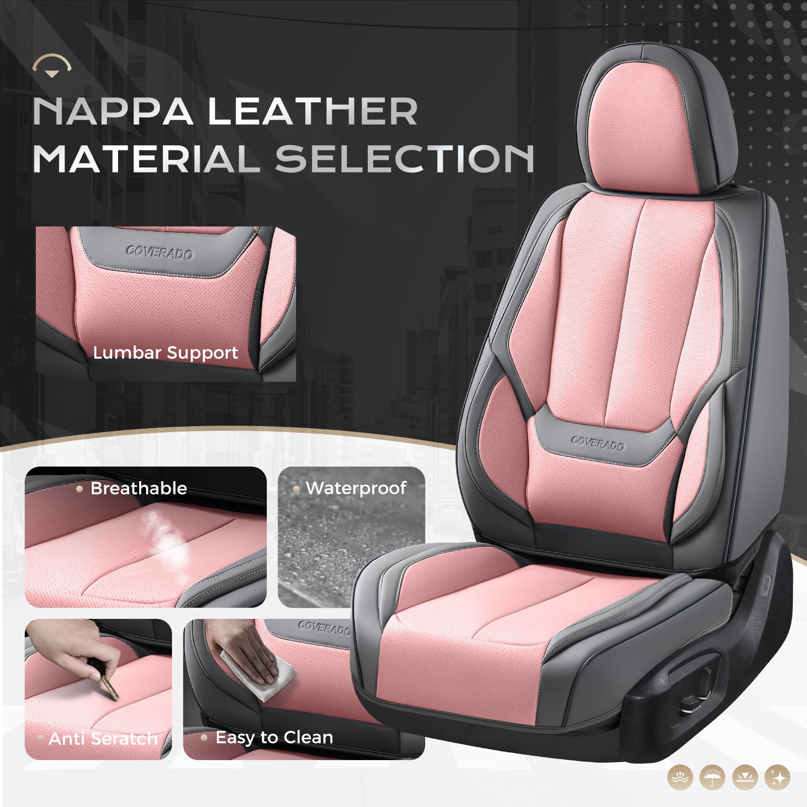 SUPERIOR PROTECTION - Cubre asientos para autos is crafted from premium NAPPA Leather, the seat covers can add great comfort while protect your seats from spills, stains, pet hairs and harmful UV rays. They are resistant to fading, gentle to touch, waterproof, breathable and made for years to come