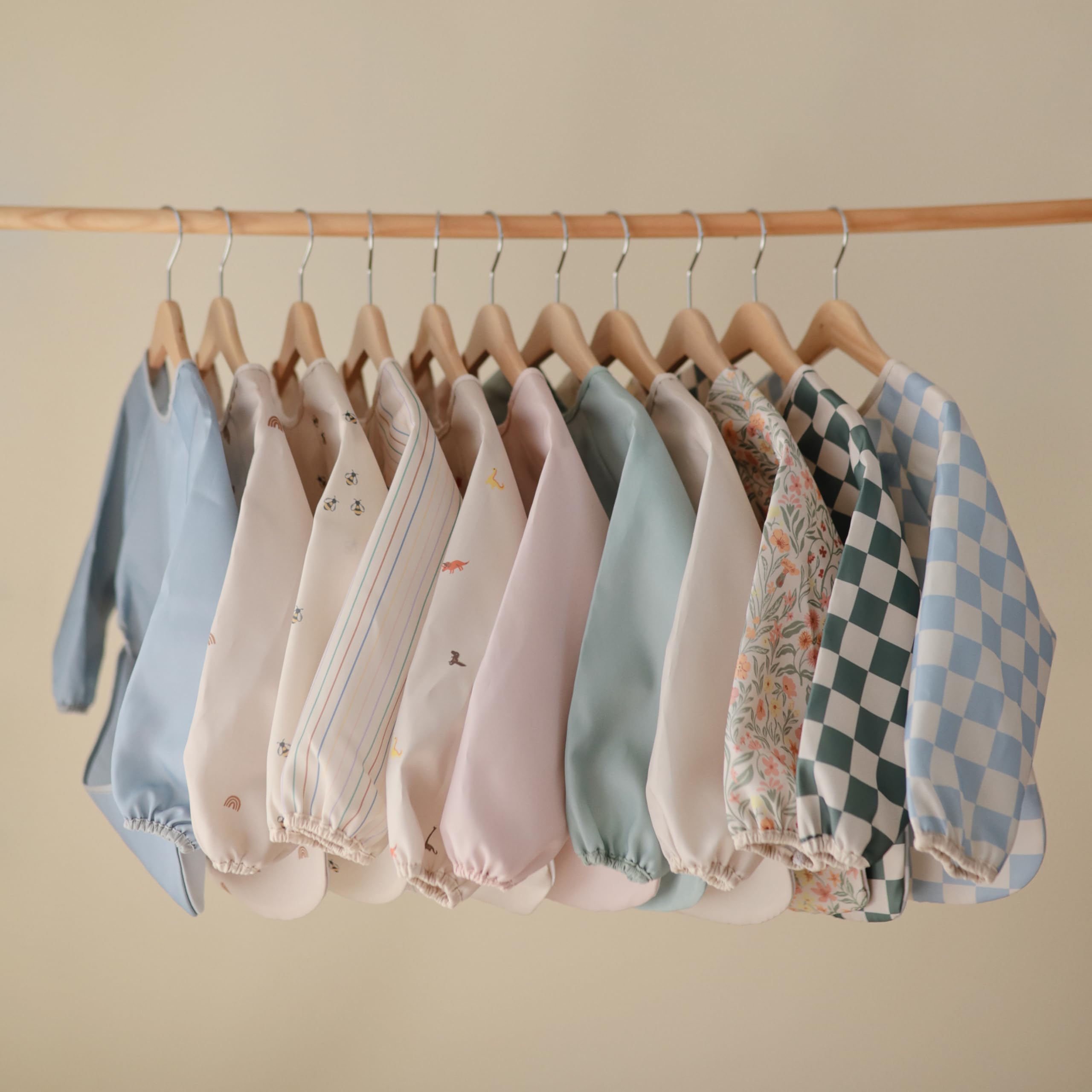 Adjustable Comfort: Made with 100% Polyester and 100% Cotton Trim, the soft long sleeve bib's wide pocket easily catches food while the bib stays secure and fully covers outfits. With a velcro closure at the back of the neck, it's perfectly sized for littles between 6 and 24 months.
