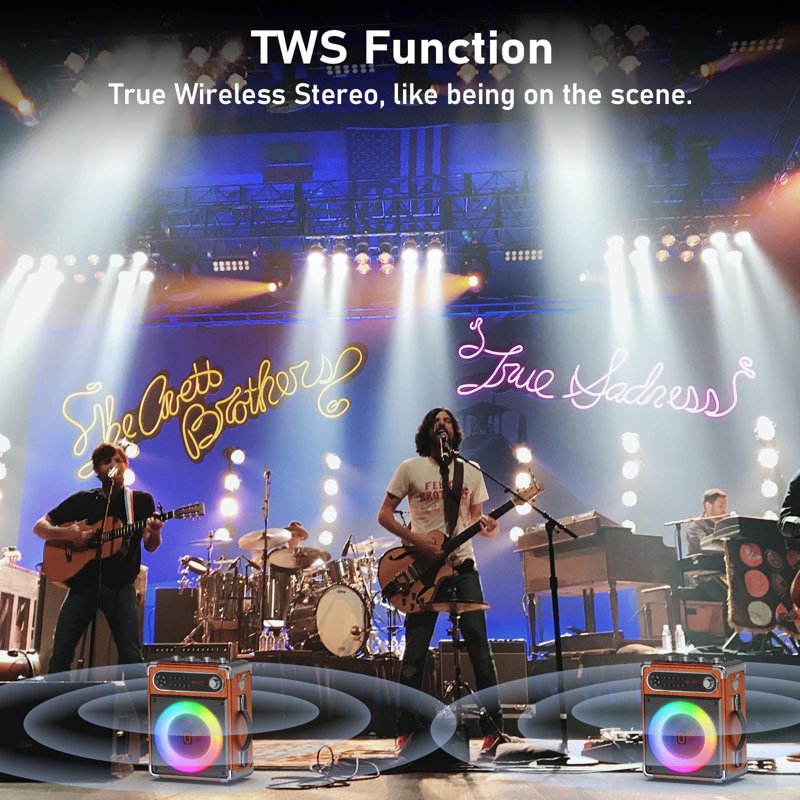 【TWS Mode for Immersive Stereo Sound】: Pair two identical Bluetooth speakers via TWS mode to relish synchronized stereo sound across two channels. This boosts the sense of presence and power, enhancing volume for an optimal music experience.