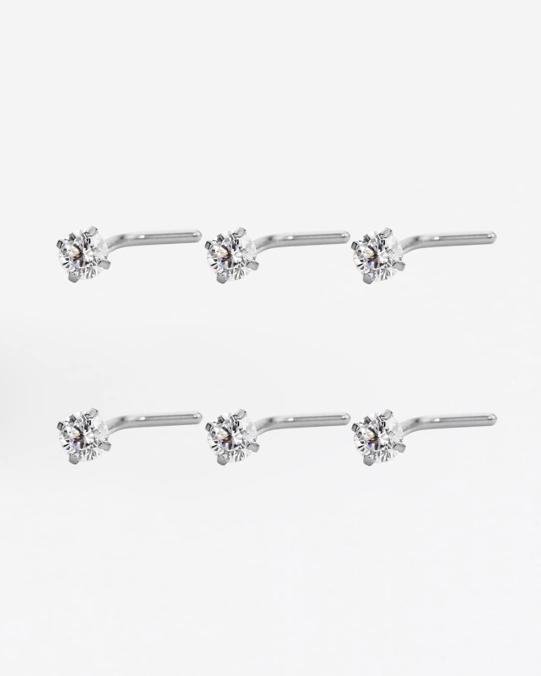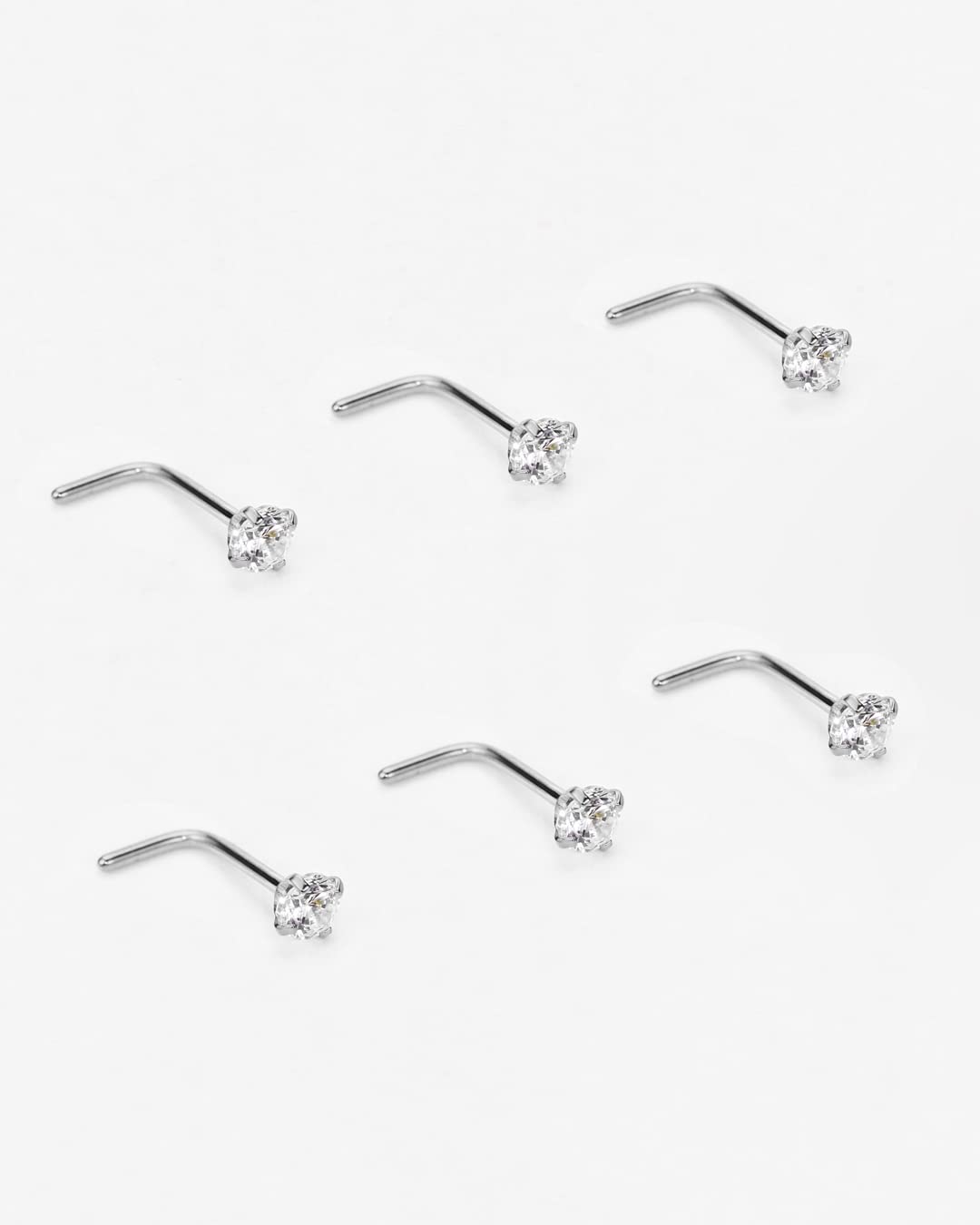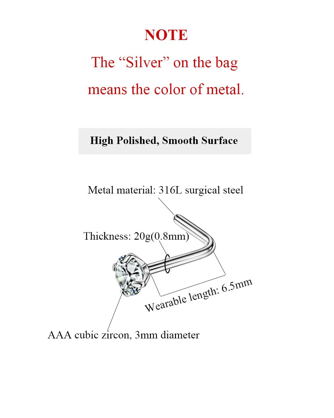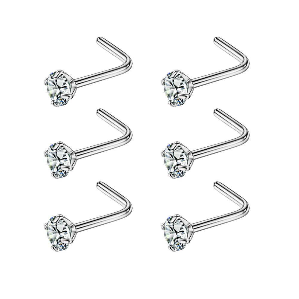 Include 6 pcs 3 mm nose studs. Easy to clean and to take in and out. When you can't wear your facial piercings at work, these nose studs will make it easy to wear on the weekends and days off!