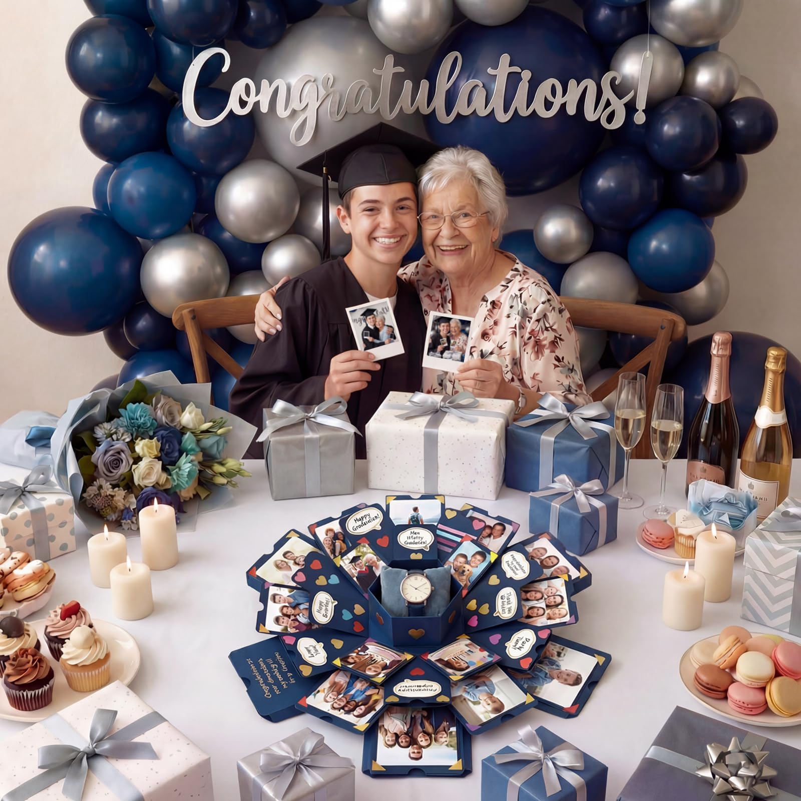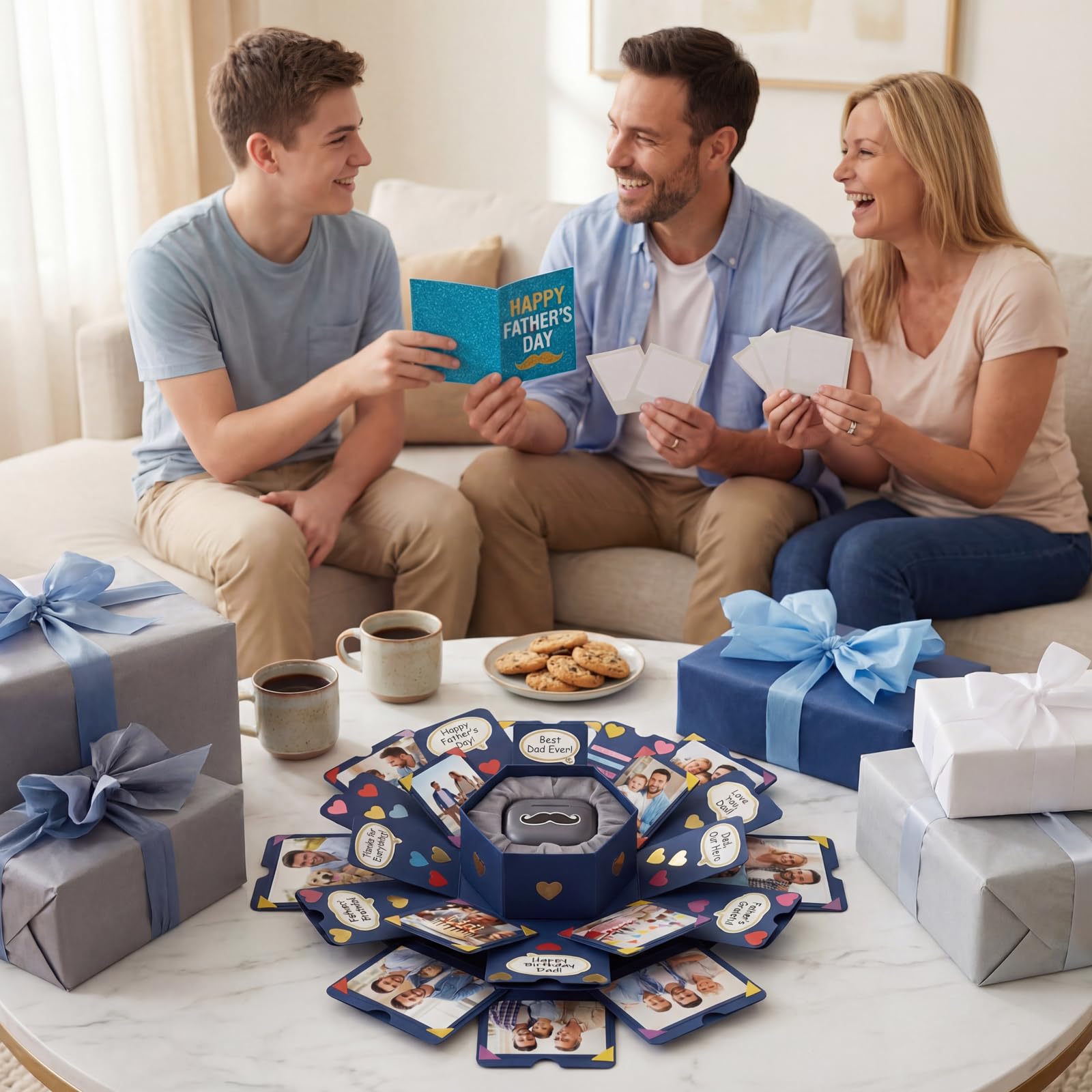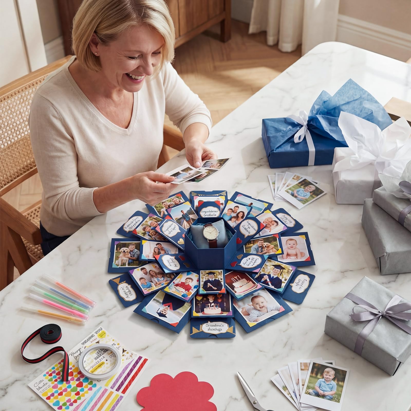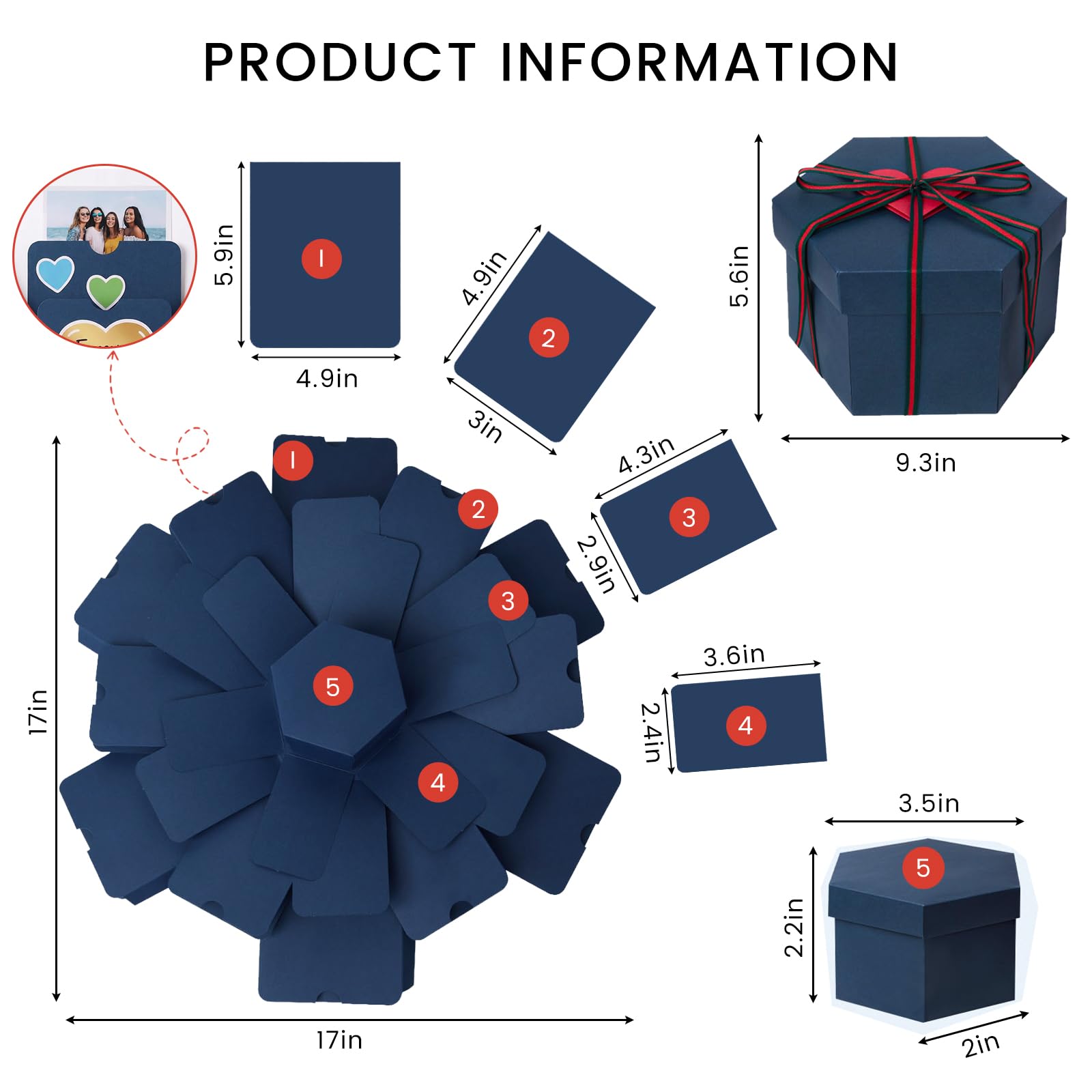 Unfold Surprises, Cherish Memories - You'll find a super surprise when this blue gift box opens. 4 layers of cards will explode. You can paste carefully selected photos on every layer, up to 36 pieces. The smallest gift box can hold gifts like rings, lipstick, necklace, watch, earrings, chocolates, perfume, etc., creating an unforgettable memory for your loved ones