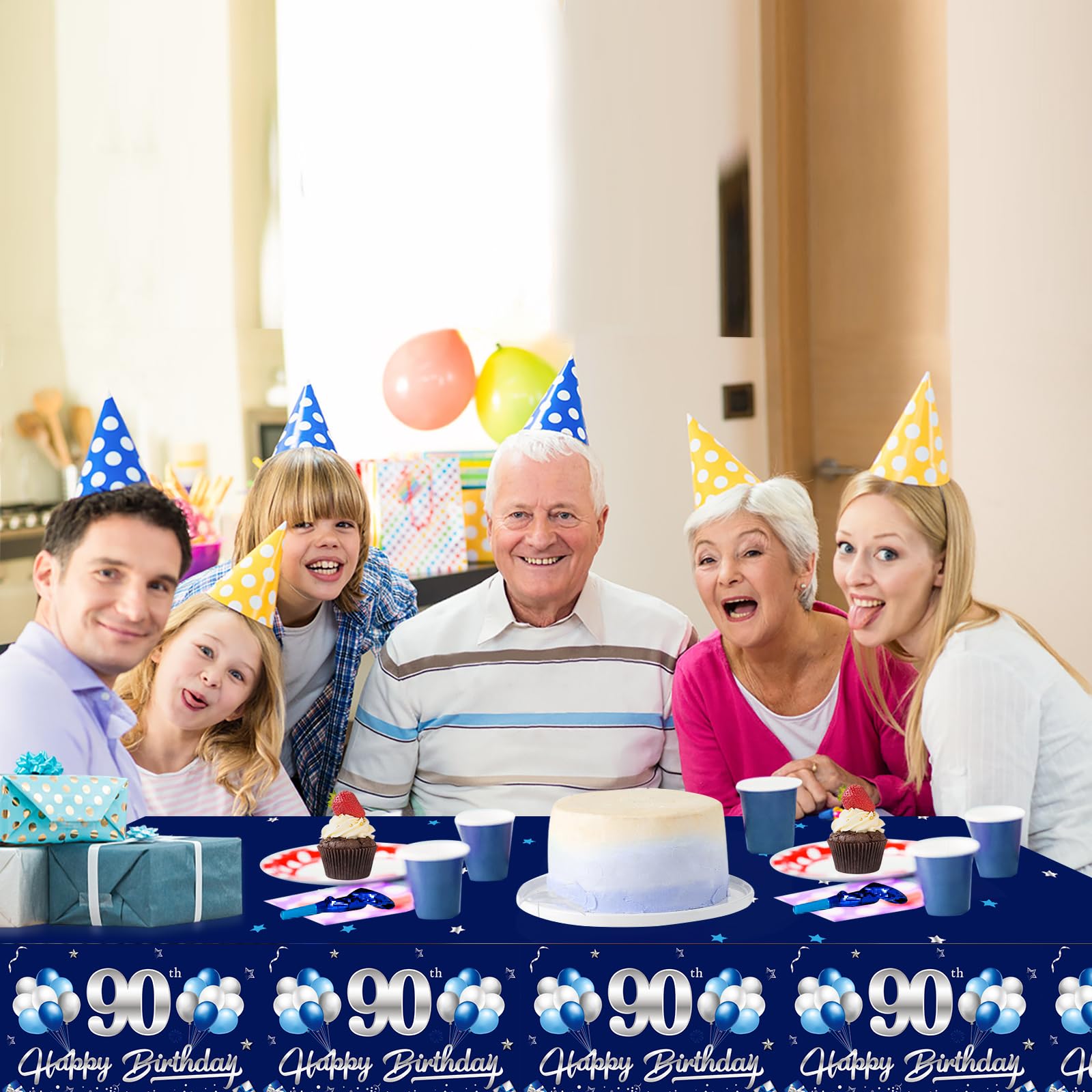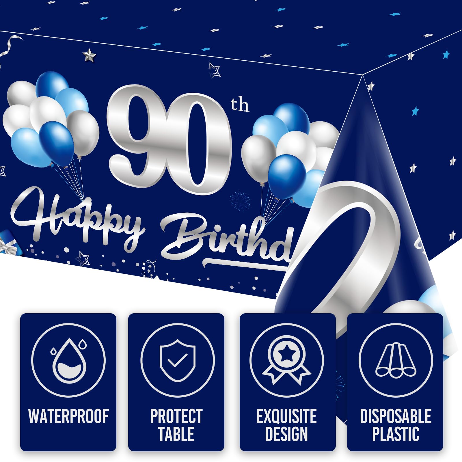 [3pcs] - Blue silver 90th birthday tablecloth decorations.108 * 54 inches, ideal size, suitable for most rectangular tables.