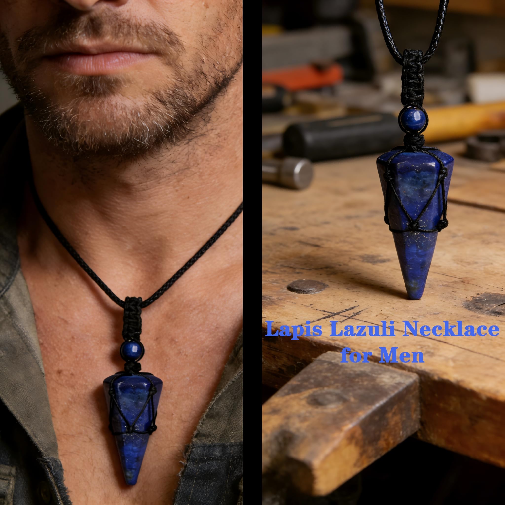 【MENS CRYSTAL NECKLACE】 A rugged lapis lazuli crystal pointed necklace with a durable adjustable rope. This jewelry is a meaningful choice for hardworking men, dads, and husbands. It stands as a top-tier Valentine's Day Gifts for Him, Gifts Boyfriend, and a reliable Father's Day or birthday surprise for those who appreciate natural strength and quality.