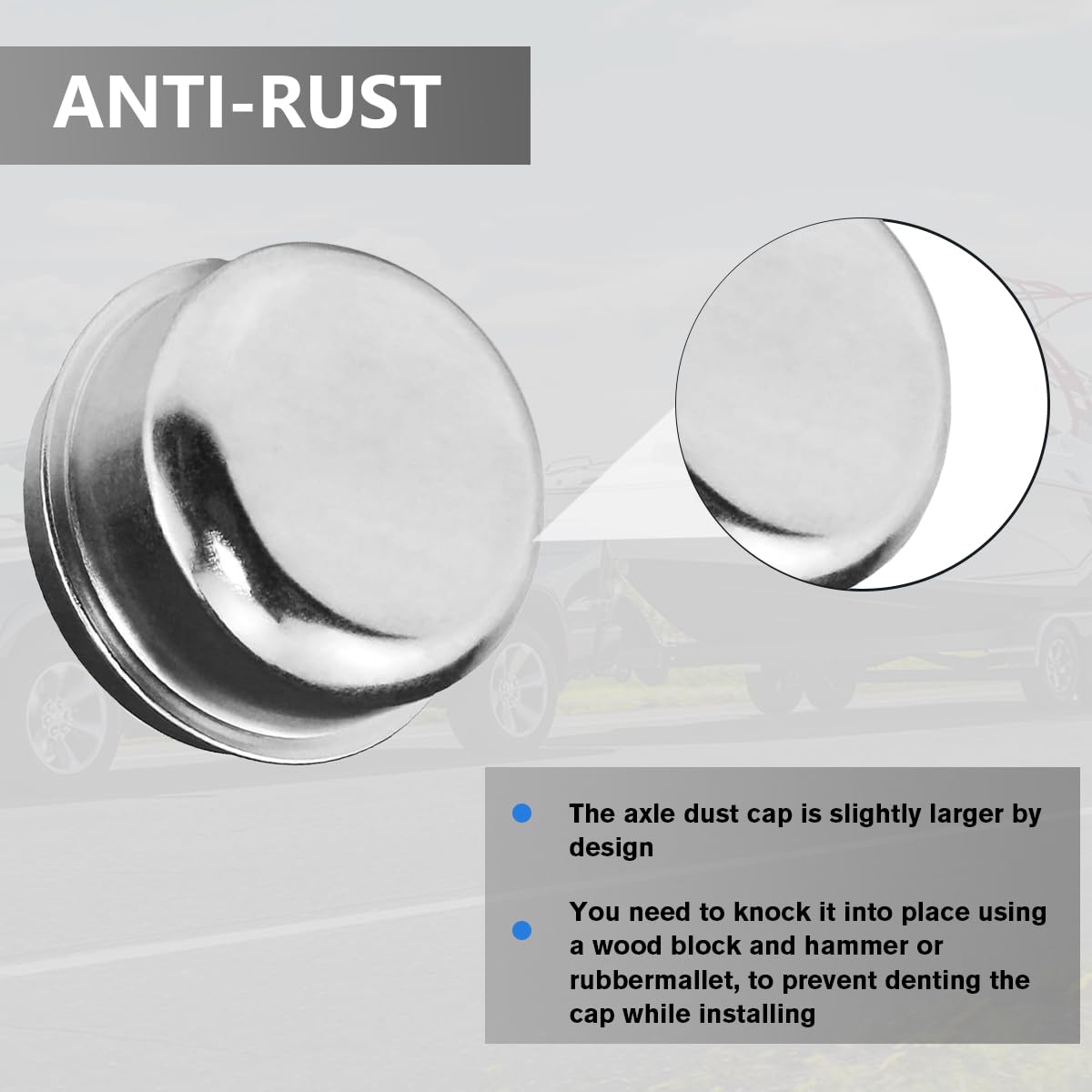 Easy Installation: Installing our trailer hub dust caps is straightforward. First, clean any dust or debris from the hub surface to ensure a clean mounting area. Next, align the dust cap with the hub mounting position and gently press it into place. Then, evenly press the edges of the dust cap with your hand to ensure a tight seal with the hub, leaving no gaps. Finally, check that the installation is secure.