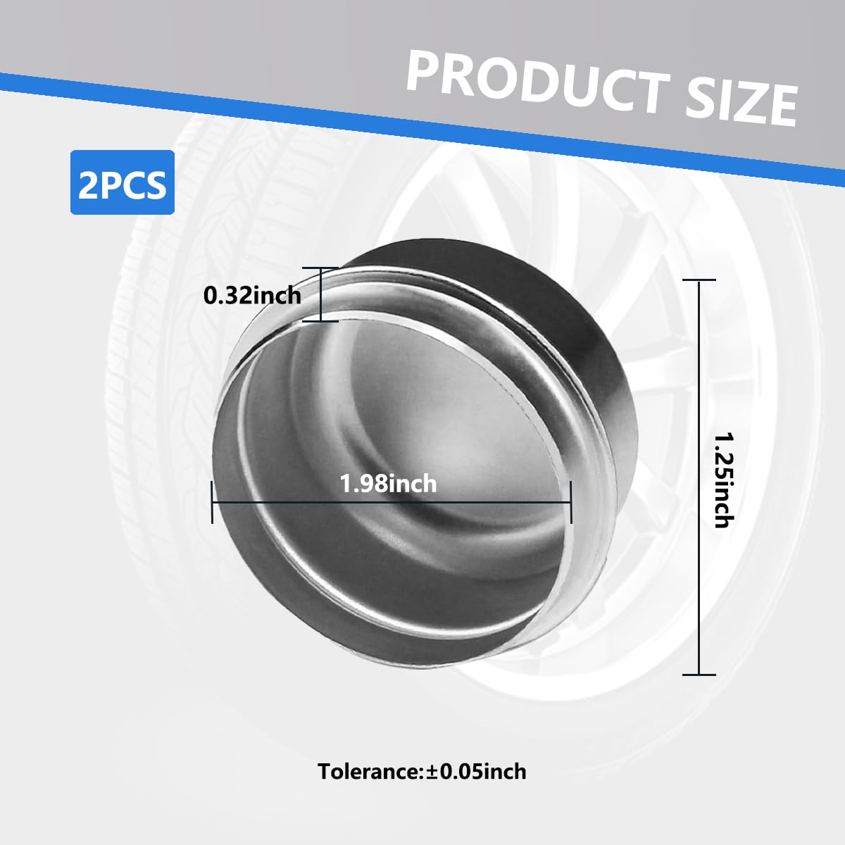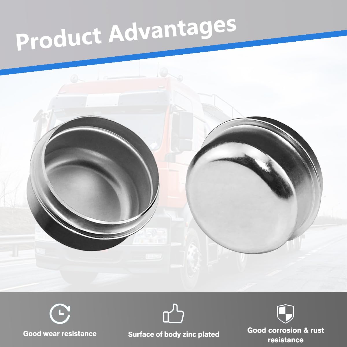 Specifications: Material: carbon steel Color: silver Size: diameter: 1.98 inch, height: 1.25 inch Weight: 44g/1.55oz Package Include: 2pcs trailer hub dust caps Why you need our product? -Durability: Resistant to impacts and friction, this product maintains its shape and integrity, providing long-lasting protection for the wheel hub and reducing the need for repairs or replacements. -Effective Protection: This product can effectively blocks dust ingress, prevents grease leakage from the wheel hub, minimizes bearing wear, and ensures stable, safe towing performance.