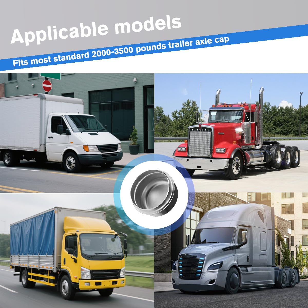 Wide Application: Our trailer hub dust caps measure 1.98 inch in diameter and 1.25 inch in height. This product fits both compact and standard trailer hubs rated for 2000-3500 lbs. Additionally, it is widely compatible with common 4-lug and 5-lug axles on the market. Whether used on trailer axles with braking systems or non-braking trailer axles serving only as support, installation is straightforward as long as the specifications are met.