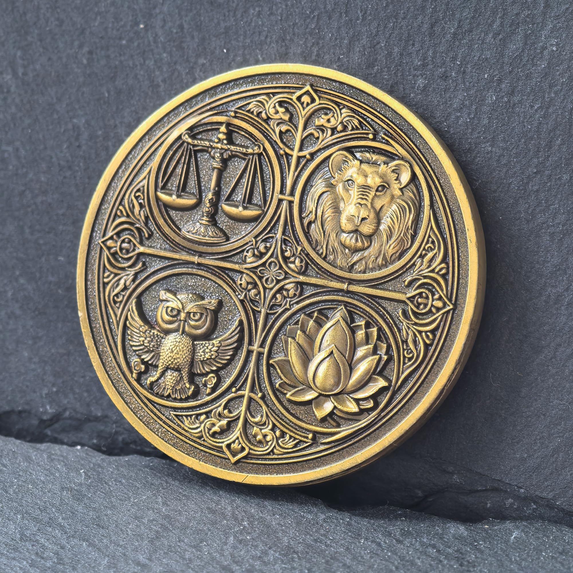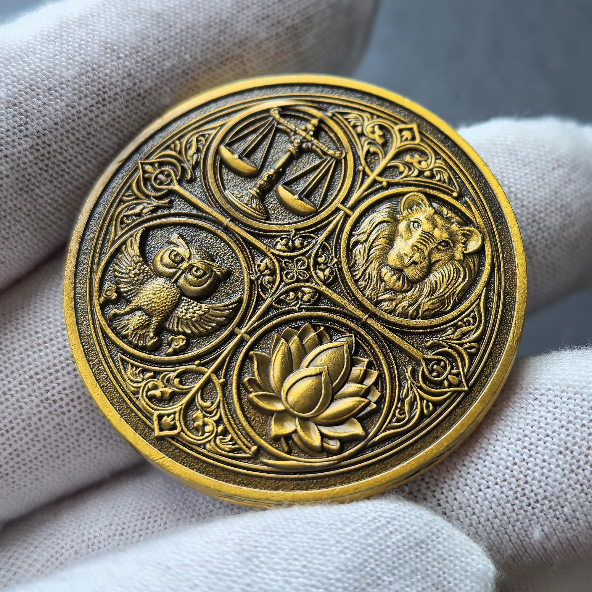 PREMIUM ZINC ALLOY CONSTRUCTION - Expertly crafted from durable zinc alloy with an antique brass finish, this 1.57-inch diameter challenge coin features exceptional 3D relief depth and crisp detailing. Comes with a protective clear capsule to preserve the intricate engravings and philosophical imagery, ensuring this meaningful token remains pristine through daily handling.