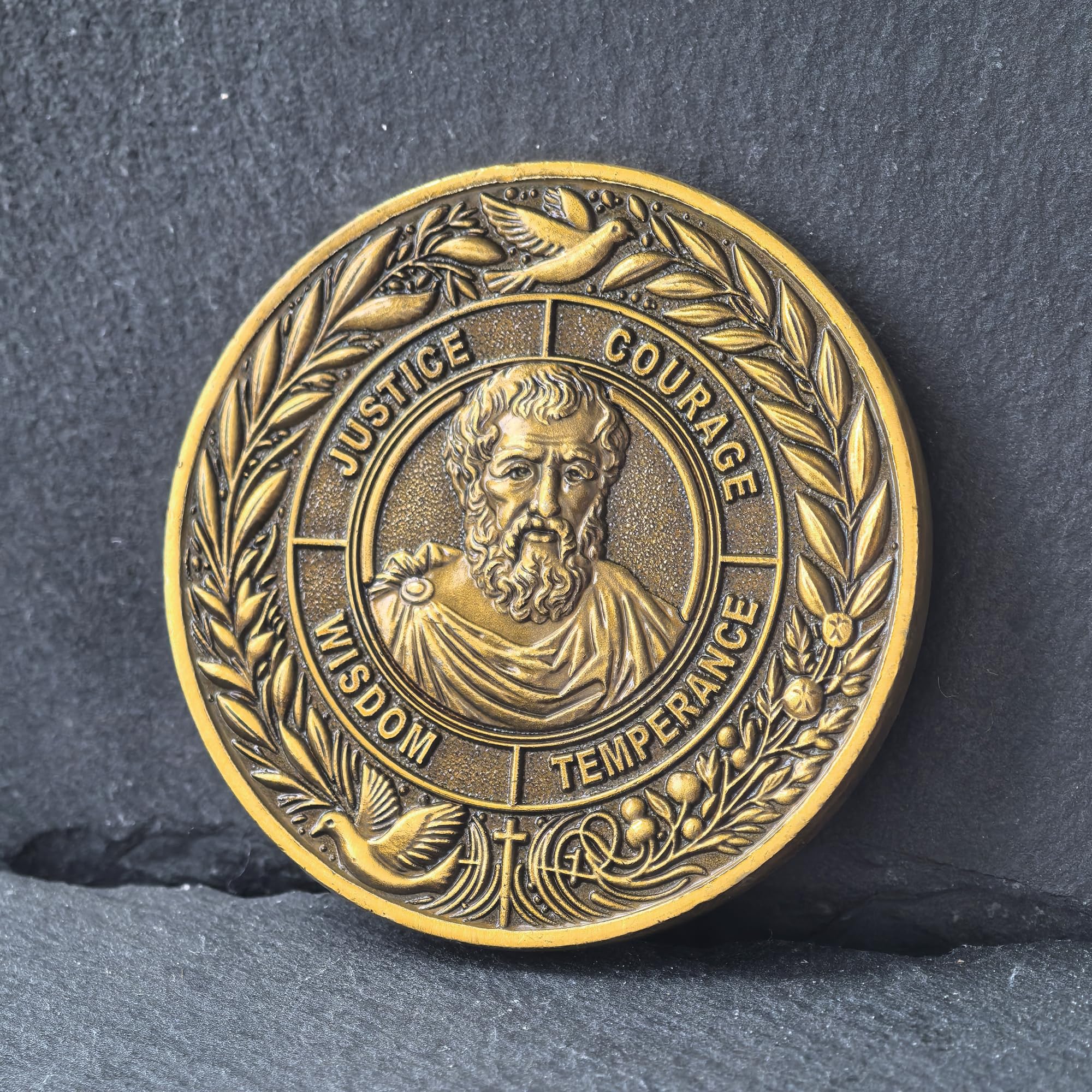 MEANINGFUL GIFT FOR THINKERS - Exceptional present for philosophy students, personal development enthusiasts, leaders, educators, graduates, or anyone committed to self-improvement and ethical living. This wisdom medallion transcends mere decoration—it's a tangible commitment to living with justice, courage, wisdom, and temperance. Perfect for milestone celebrations or as a thoughtful encouragement gift.