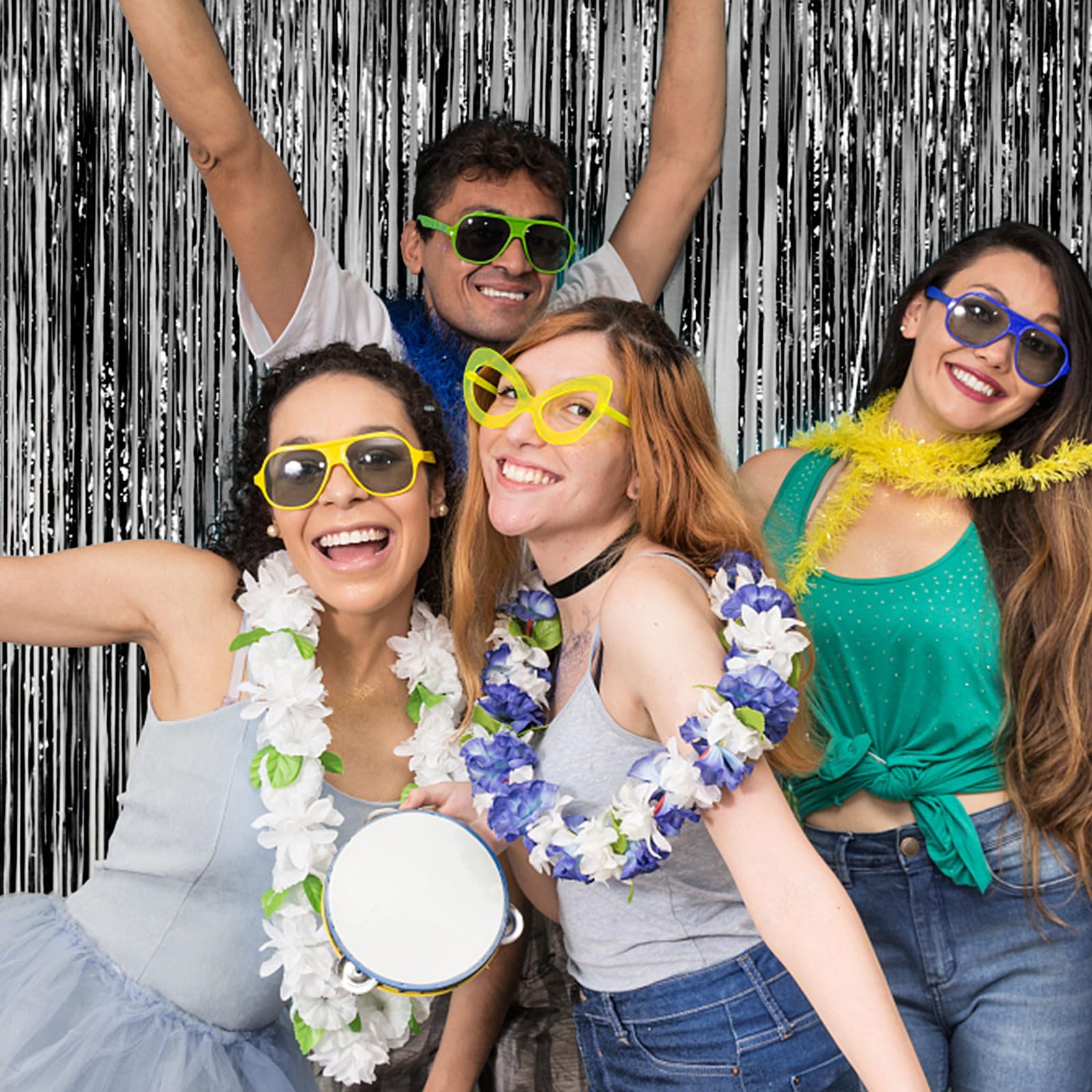 Foil Fringe Backdrop Black: 5Packs/Set, enough quantity for your party decoration. Each pack curtains size is 3.28 ft x 6.56 ft, enough length for decorate your party. Perfect accessories for decorating doors and walls.