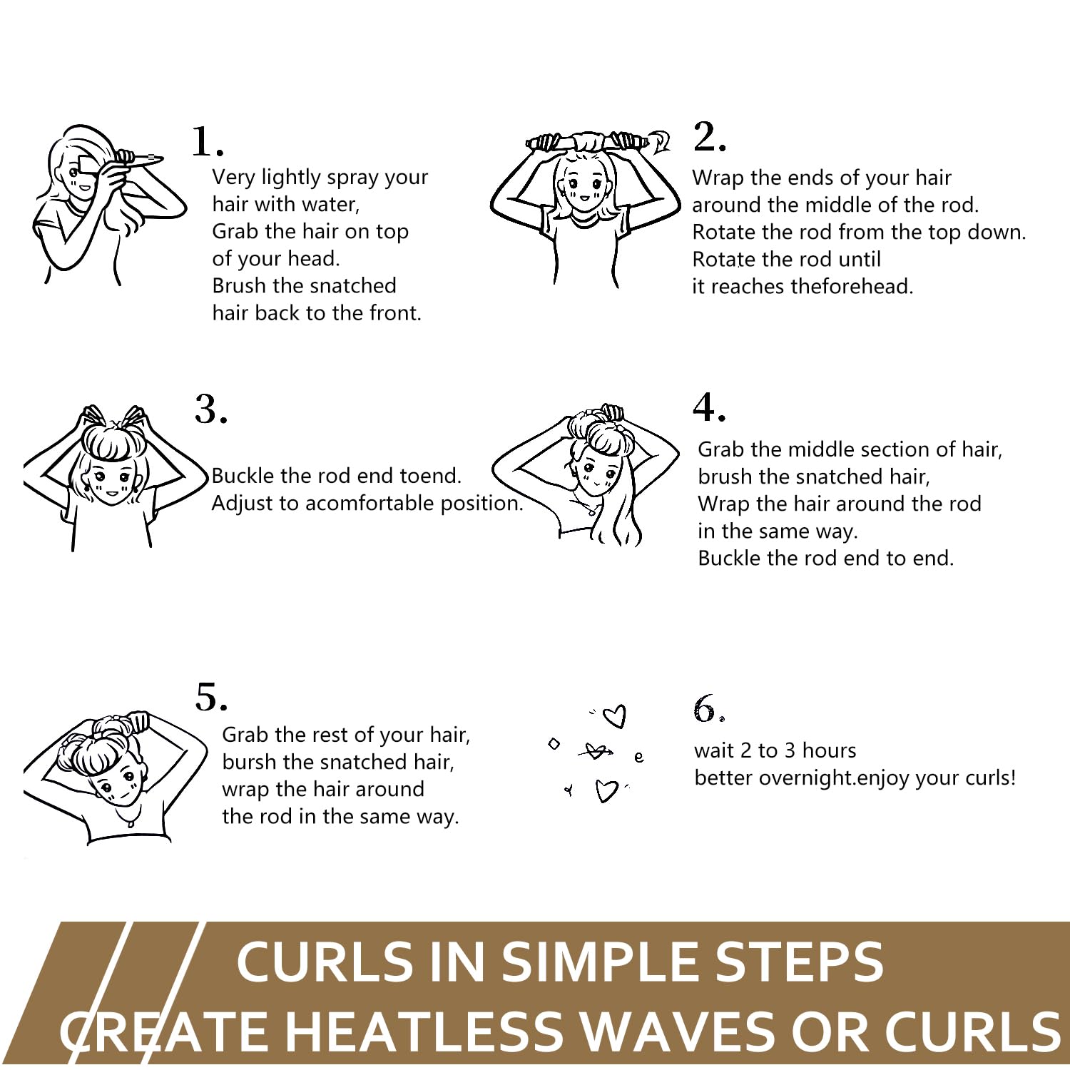 【Wear Them Day And Night】Hair curlers to sleep in.Fall asleep comfortably and wake up looking beautiful.The soft satin material is gentle on your hair and scalp, allowing you to sleep in total comfort and wake up to perfect curls or waves.Heatless curls overnight.
