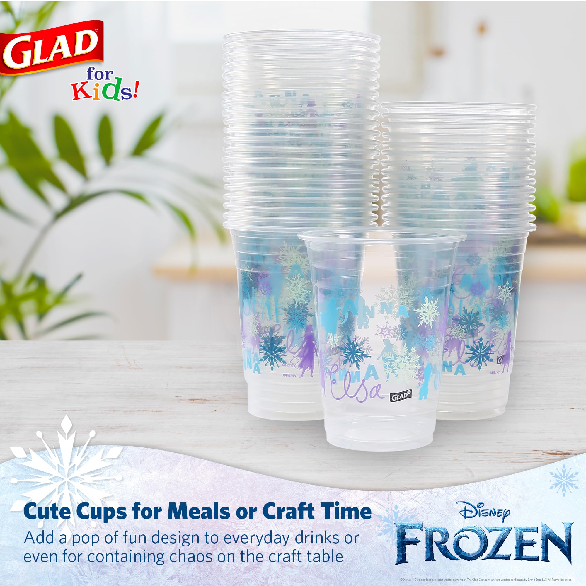 CLEAR CUPS WITH DISNEY FROZEN CHARACTERS – Make any gathering or event a party when you use Glad for Kid plastic cups in this cute design.