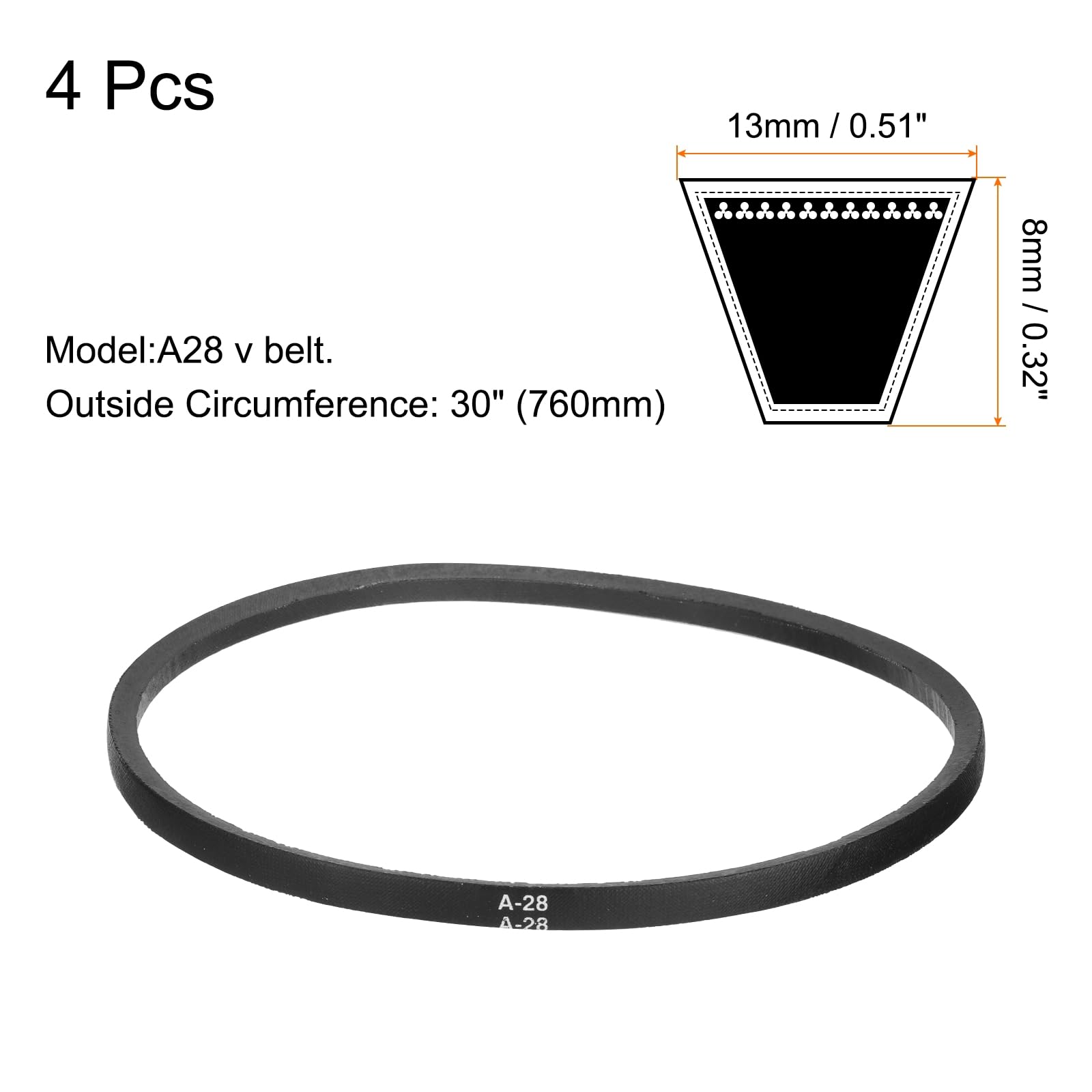 Model: A28 or 4L300 v belt. Inner Circumference: 28" (710mm); Outside Circumference: 30" (760mm).
