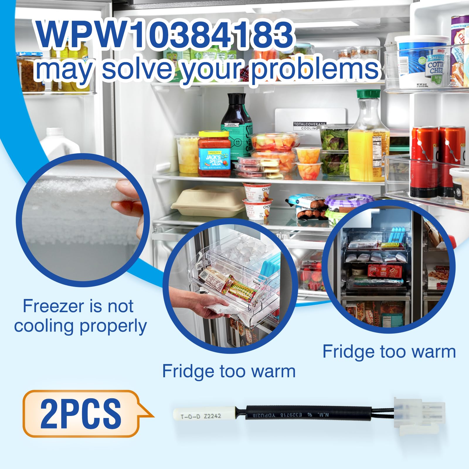 【Compatible Brands】WPW10384183 Freezer Thermistor fits refrigerators from Whirlpool, Kenmore, Maytag, Amana, KitchenAid