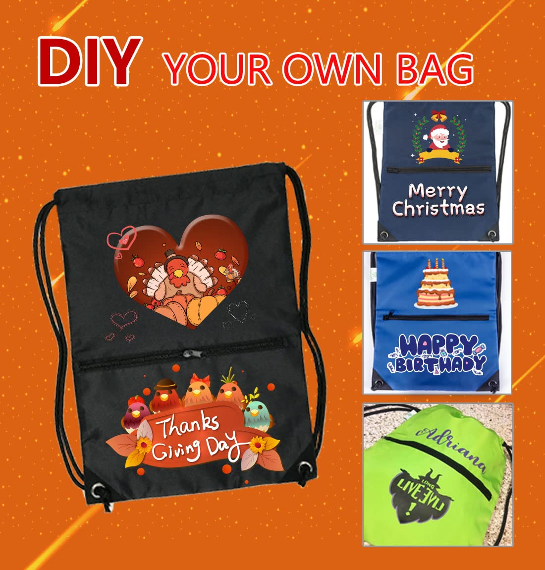 DRAW CORD CLOSURES: -Make you store things quickly and take them in and out easily