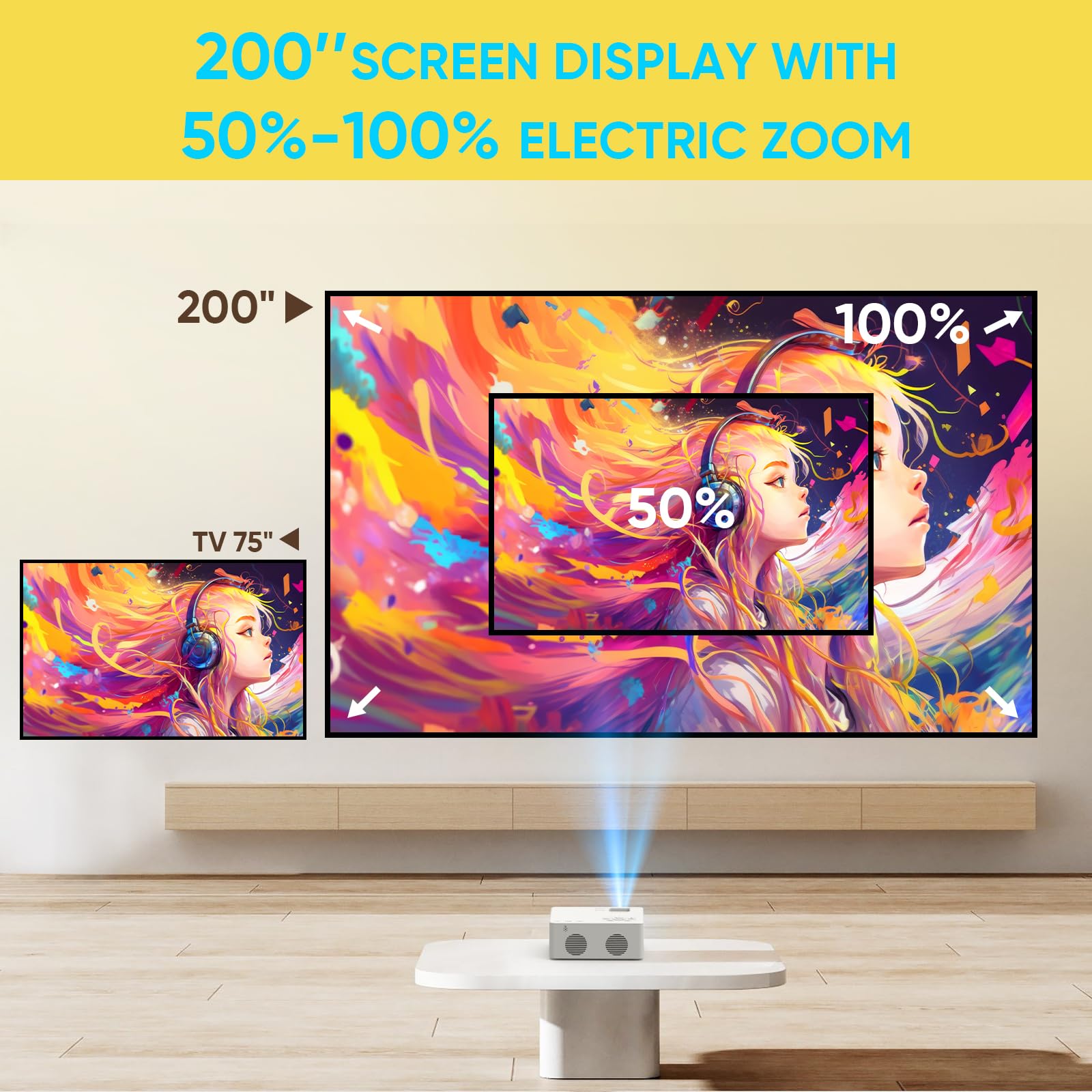 🌻TRANSFORM YOUR PATIO INTO MOVIE THEATER: No time to go to the actual movie theater? Create your outdoor movie theater by simply casting content from your devices to 200'' giant screen with this portable projector. Get your popcorn ready for the perfect movie night with your family and friends!
