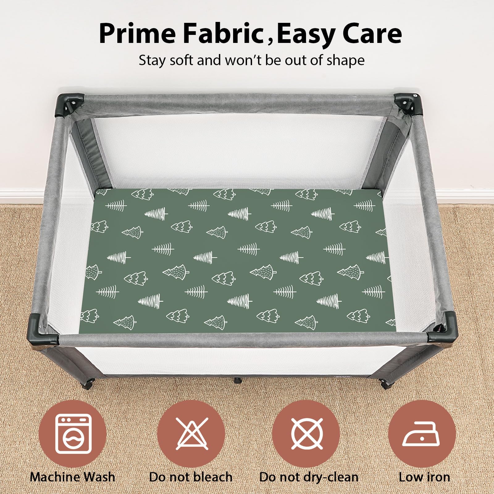 Easy Care & Sustainable: Made from pre-shrunk fabric, our pack n play sheets resist fading, pilling, and shrinking, even after hundreds of machine washes. With double-stitched edges and corners, they are built to last, ensuring comfort for your baby.