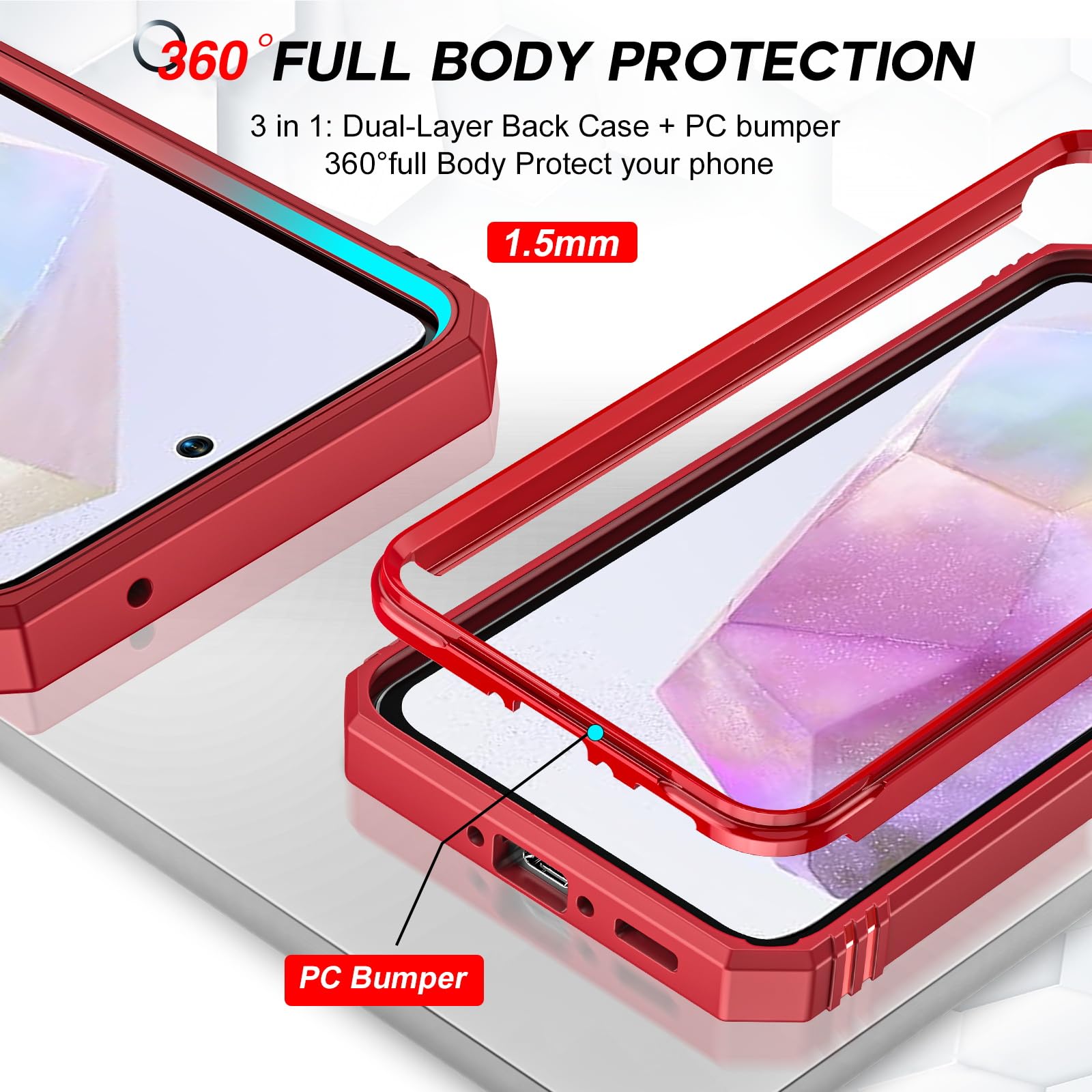 Tempered Glass Screen Protector : The Samsung Galaxy phone case presents [2 Packs] advanced HD clarity 9H hardness ultra resistant tempered glass screen protector. The Samsung Galaxy A35 5G phone case front cover provides 360-degree all-round protection for your phone, effectively prevents screen scratches, supports fingerprint recognition, and improved touch-smooth surface for better handheld experience