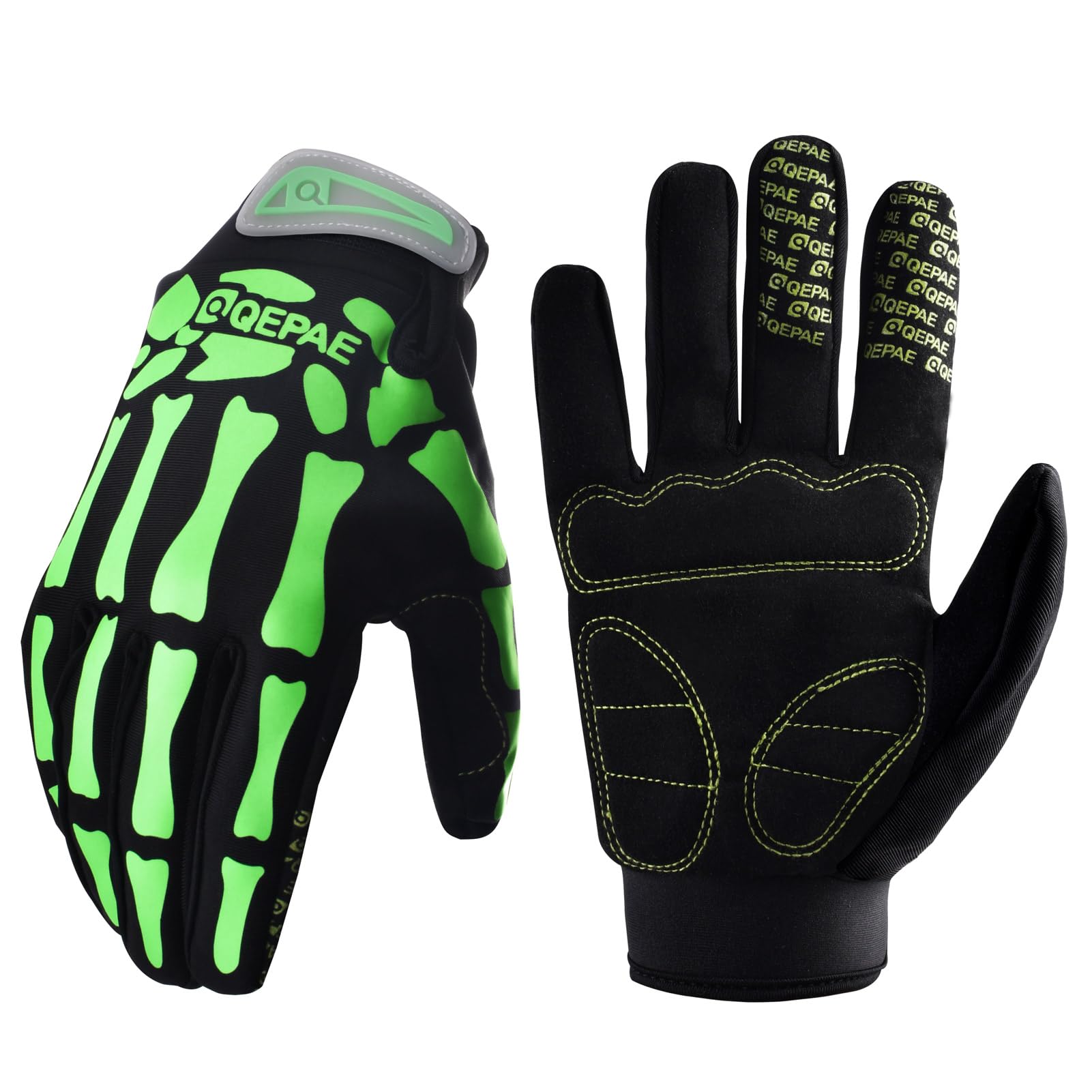 Skeleton Design: The skeleton gloves are coated with white skeleton bones, make the whole appearance look uncanny and creates a ghostly atmosphere. The printed skull pattern make you different and become a cool and stylish rider