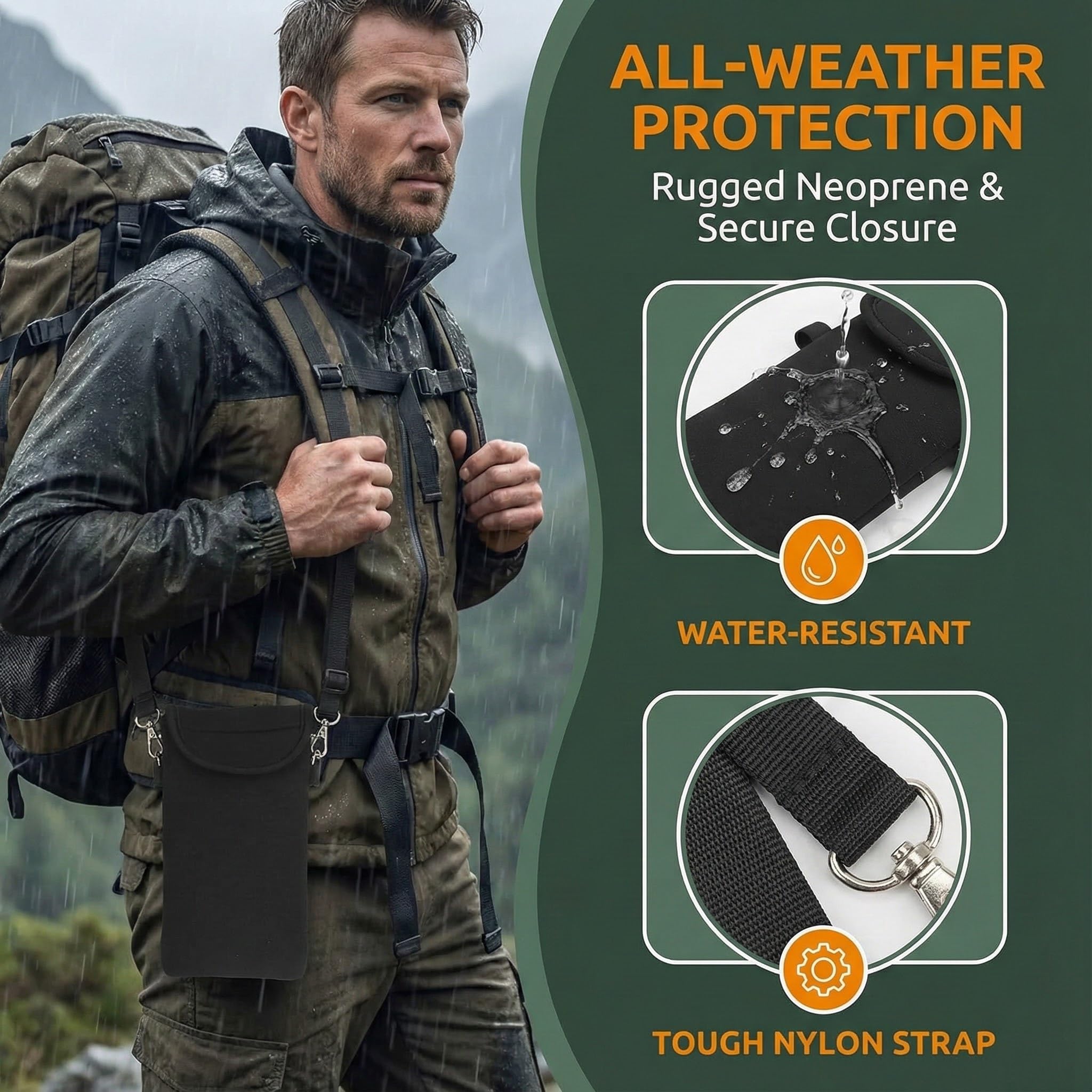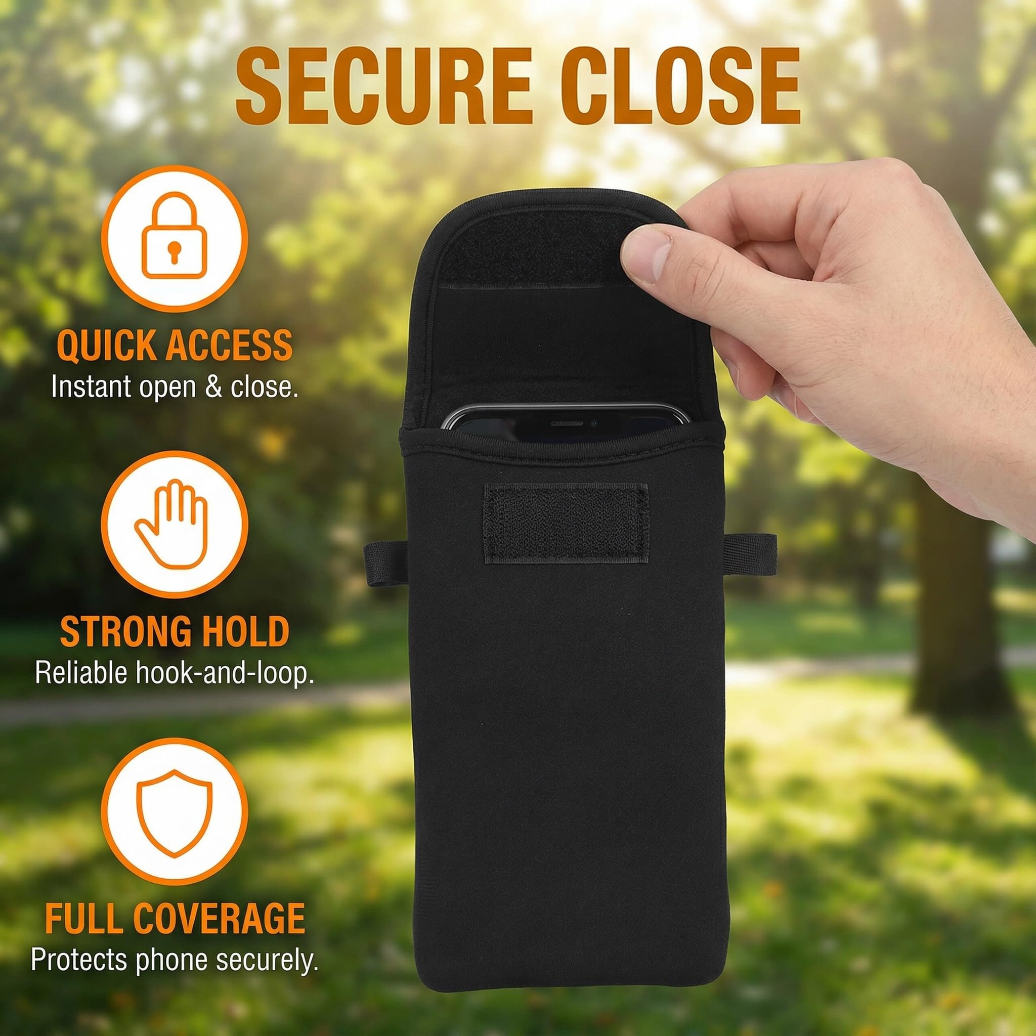 Flexible Materials: Crafted from water-resistant neoprene and a sturdy nylon neck strap, this neoprene phone pouch offers soft, shock-absorbing protection. It shields your phone from drops, bumps, and scratches, making it a reliable cell phone case with lanyard for on-the-go lifestyles. The hook-and-loop closure ensures your phone stays in place during movement