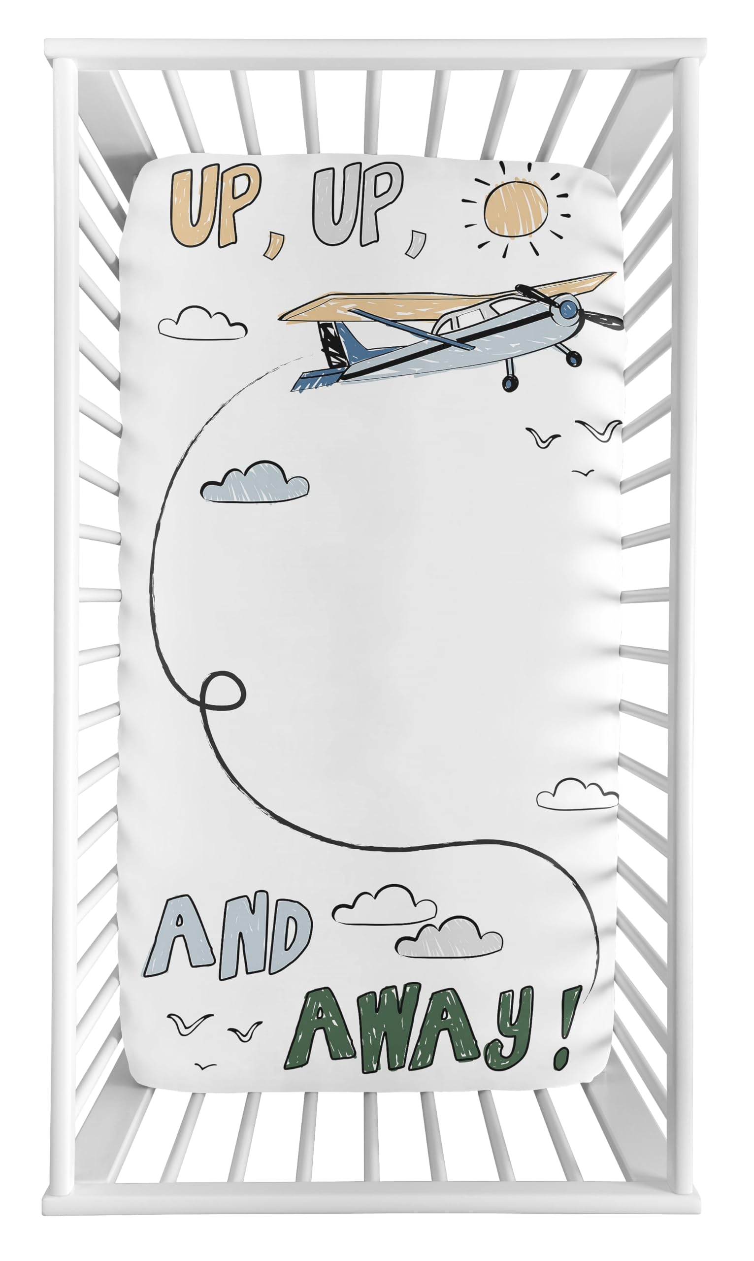 Brushed Microfiber - Grey, Yellow, Green, Gray, White and Blue "Up, Up, And Away!" Vintage Airplanes Transportation Air Plane Clouds Sun Sky Aviator Aviation Airplane Photo Op Print