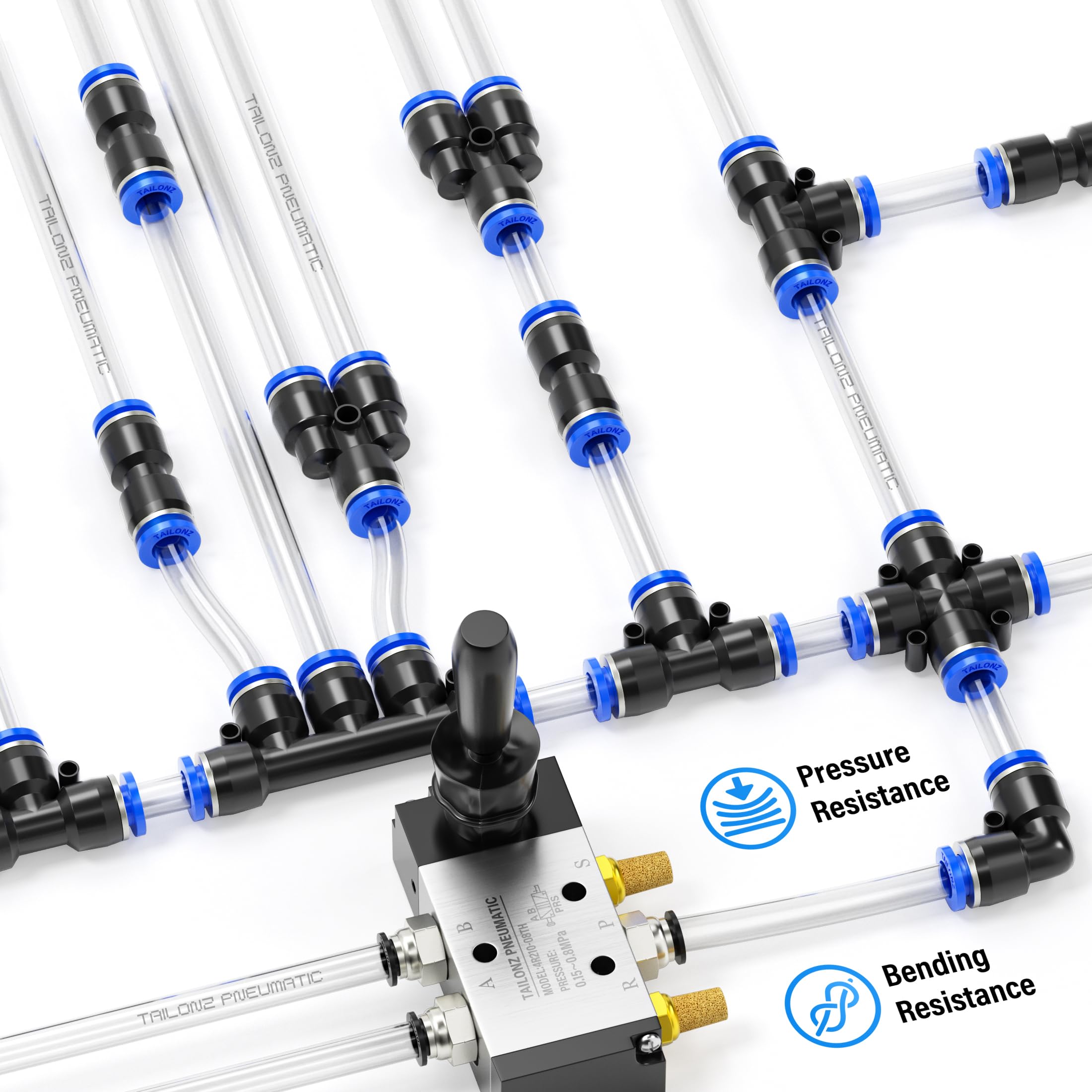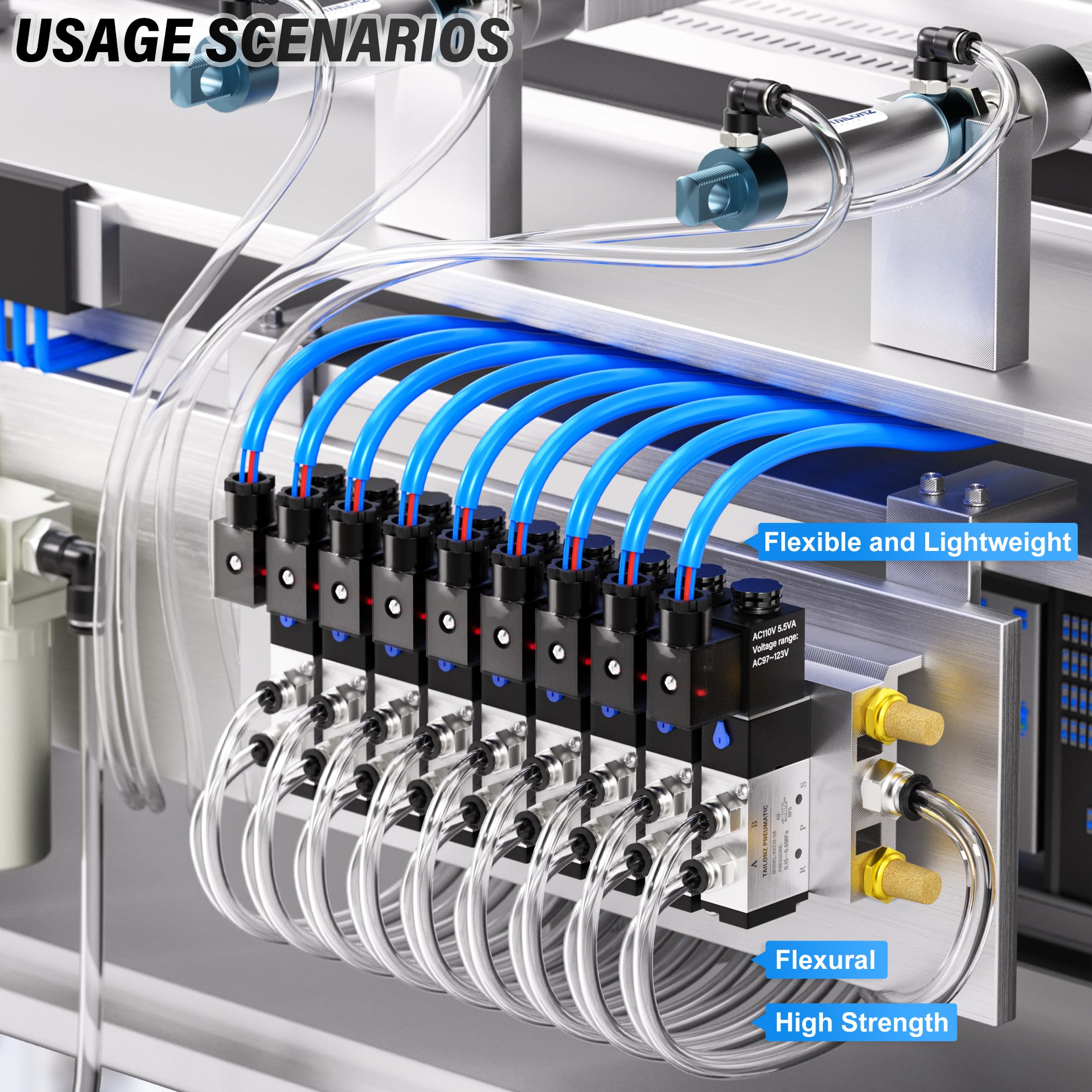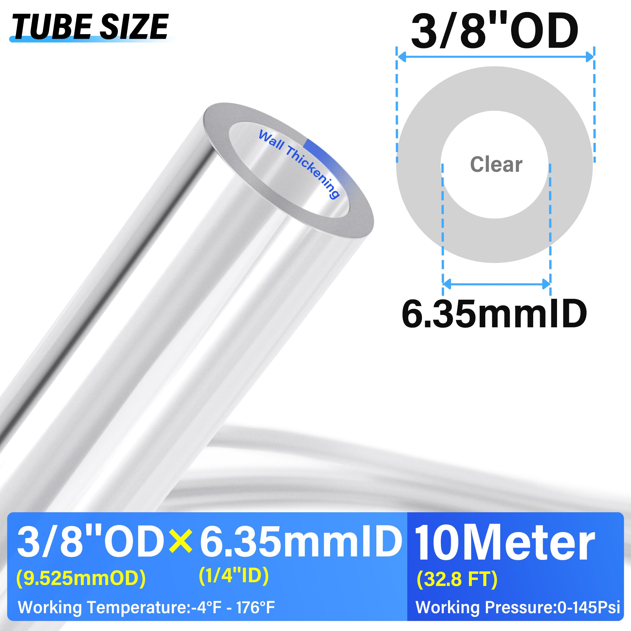 【Package Included】1 × 3/8''OD PU Tube(10Meter),2 × PE-3/8(Union Tee),2 × PV-3/8(Elbows),2 × PY-3/8(Y Spliters),2 × PU-3/8(Straight Unions),4 × PC-3/8-N2,6× PPF(3/8''OD),6× PP(3/8''OD),1× Teflon Tape,1× Tracheal Scissors