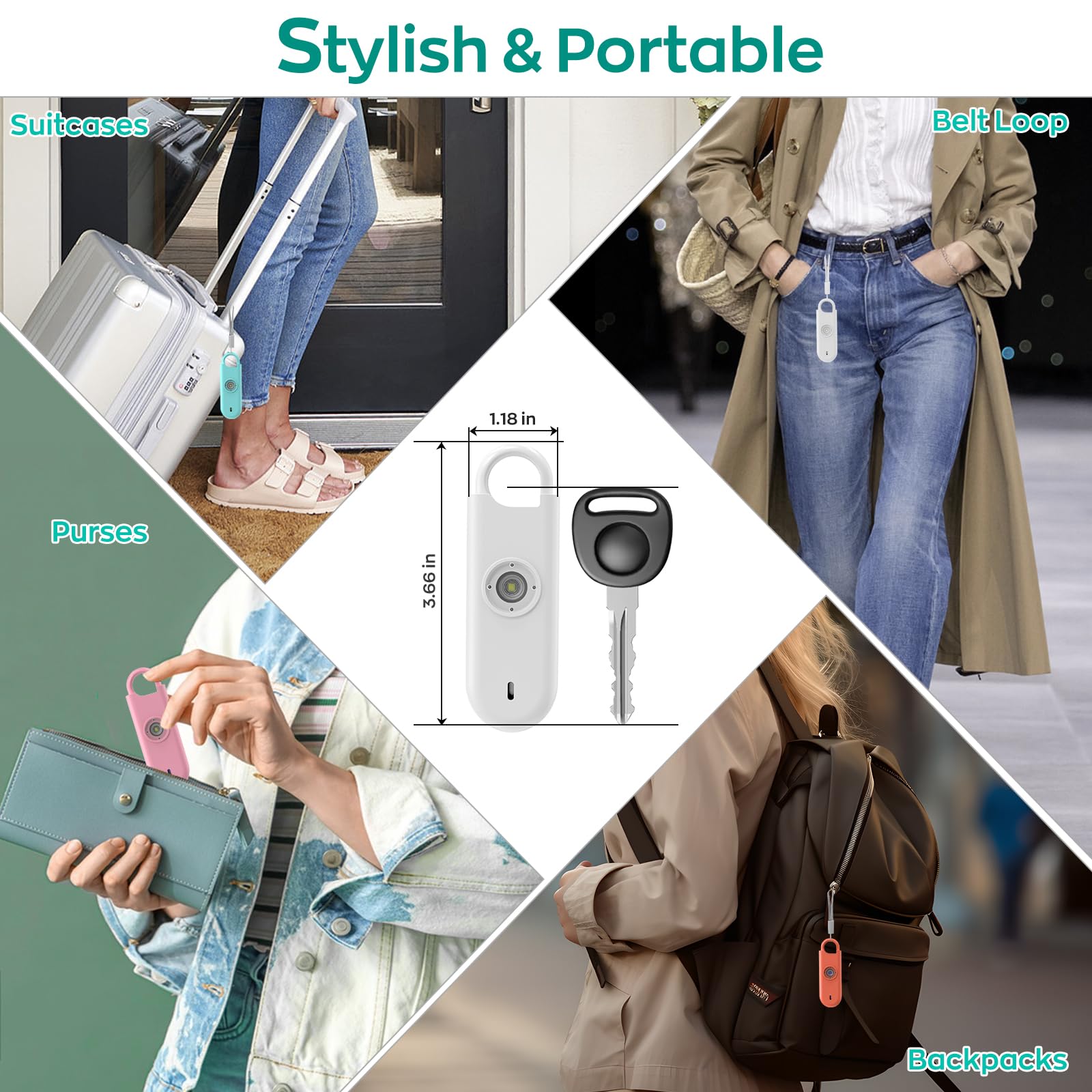 Compact and Stylish: The police-approved rape alarm combines practicality and elegance. Weighing only 0.95 oz and as small as a key, it's easy to carry and even TSA-compliant for air travel. The included lanyard lets you easily attach it to wallets, backpacks, keys, belt loops, or suitcases. With multiple fashionable color options, it can be easily matched with different styles. It is a perfect choice for safety-conscious women who value fashion.