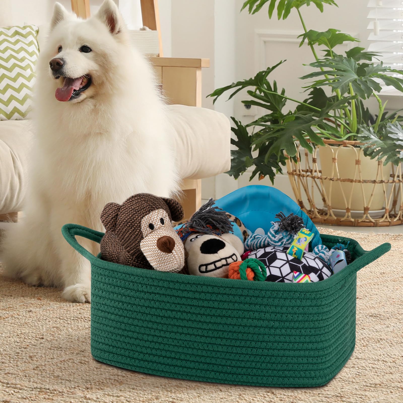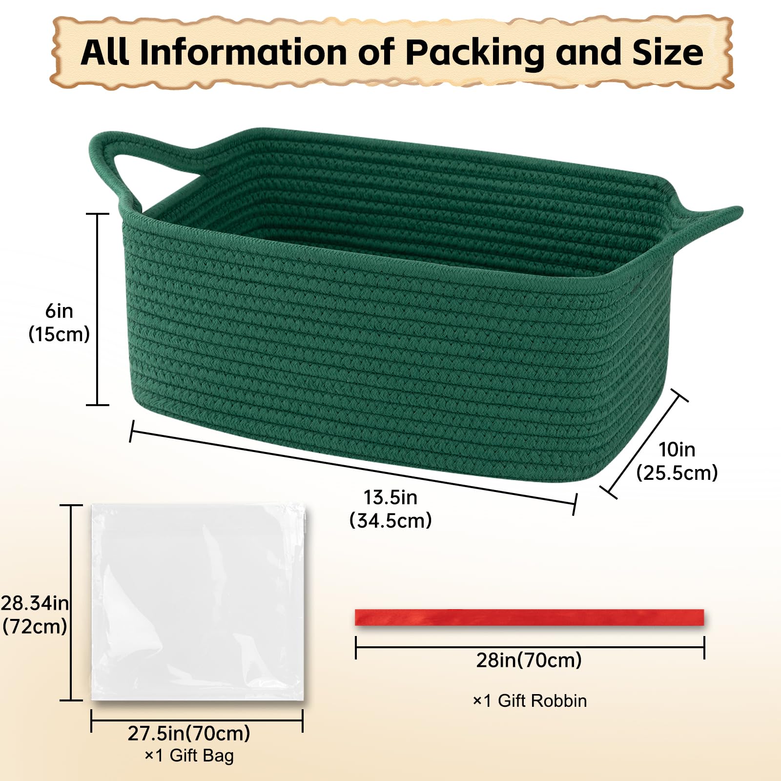 Safe Material: The basket is 13.5*10*6in and made of 100% pure cotton material, no chemical material, no odor, soft and skin friendly. It is no sharp edges that may scratch the floor, especially suitable for children and pets.We are passionate about providing you and your family with a healthy and clean home atmosphere