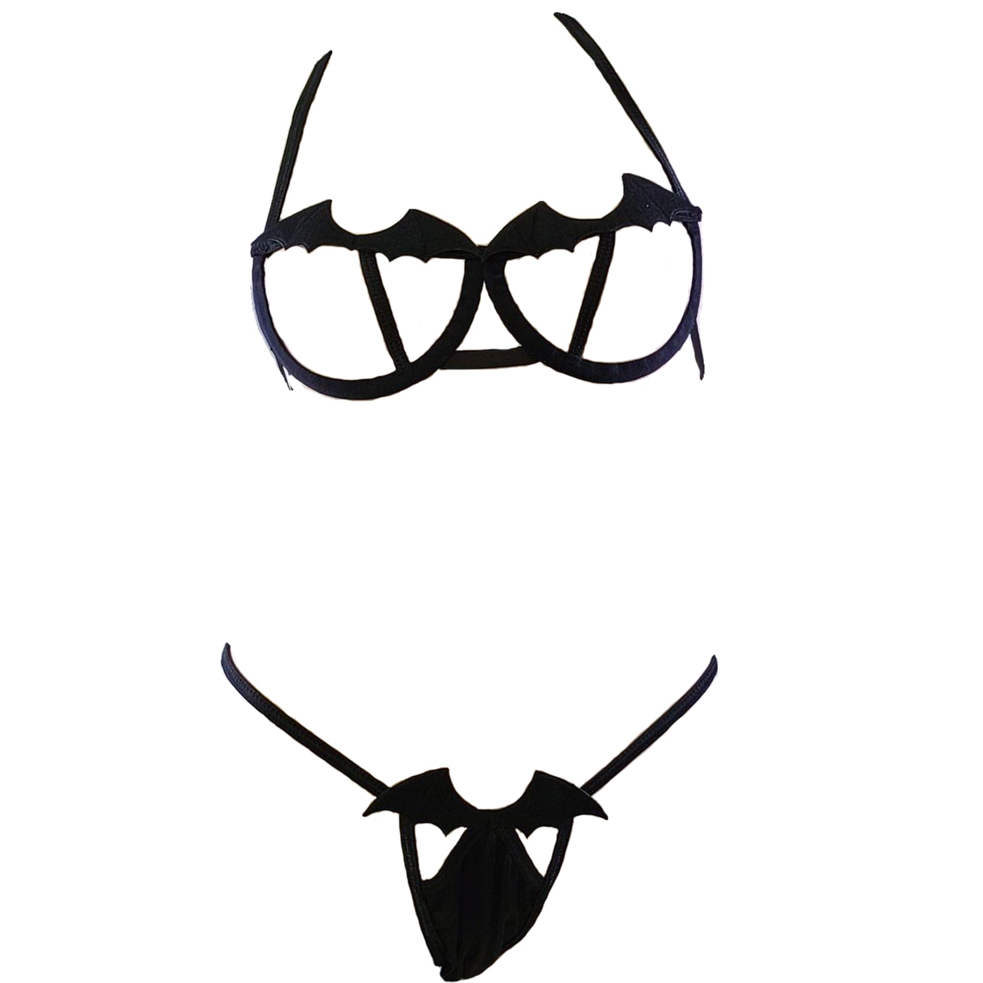 Halloween Devil Lingerie, Small decoration, big charm, all black, bat wings and small bow , all parts are just perfectly match together