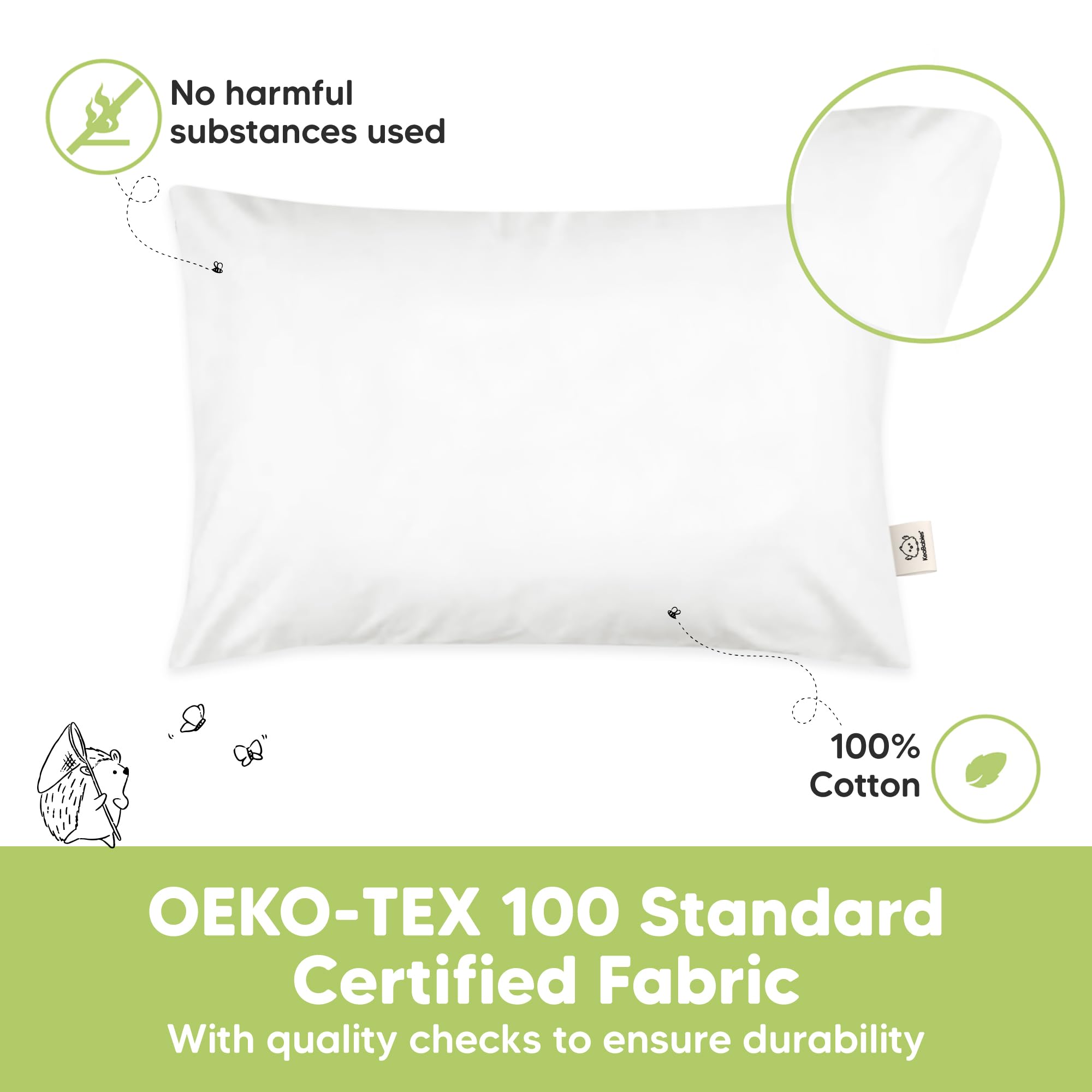 OEKO-TEX 100 Standard Certified - We use a cotton kid pillow shell that is certified by OEKO-TEX 100 Standards to be free from harmful substances, making it the best pillow for toddlers, kids, children. It is ultra soft and breathable year-round.