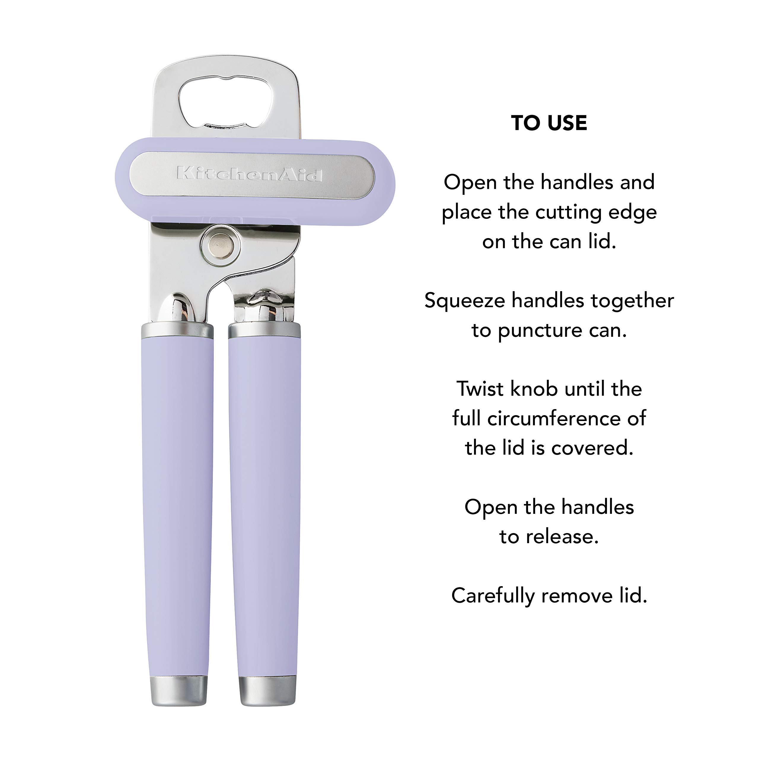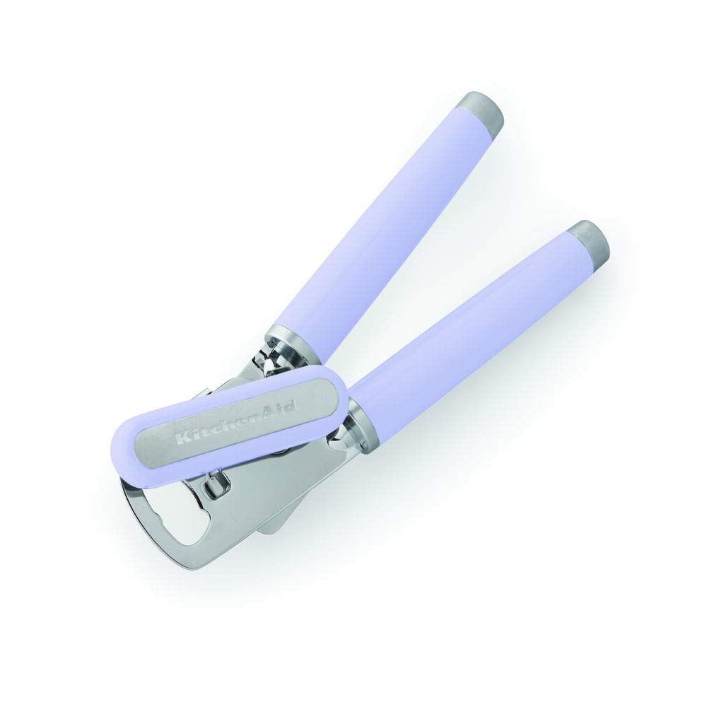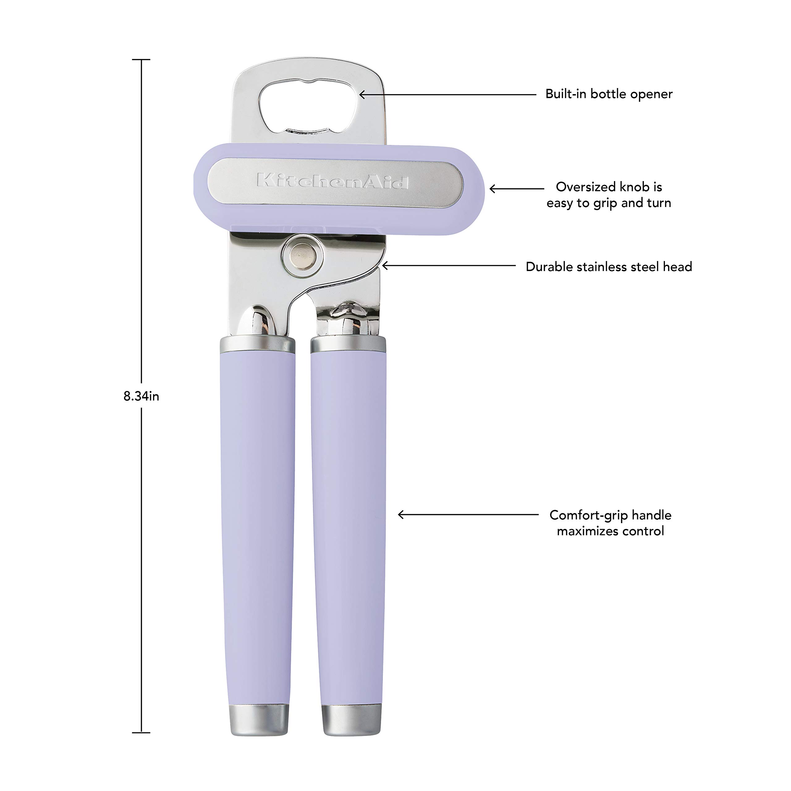 The KitchenAid can opener is an essential gadget for any kitchen. The can opener's large, easy-to-turn knob makes opening cans an easy task. The can opener features a sharp, 420 J2 stainless steel cutting wheel and an integrated bottle opener built into the head. This can opener is durable and comes with ergonomic handles to provide a sure grip when in use. The Matte ABS handles Features a debossed logo, ABS chrome plated bolster, and a stainless steel end cap containing a "KitchenAid 1919" Medallion, which pays tribute to the year the KitchenAid brand was founded. Hand wash with warm water and a mild detergent; rinse and dry immediately.