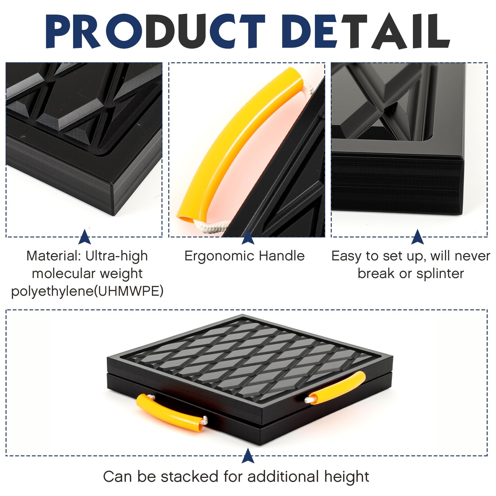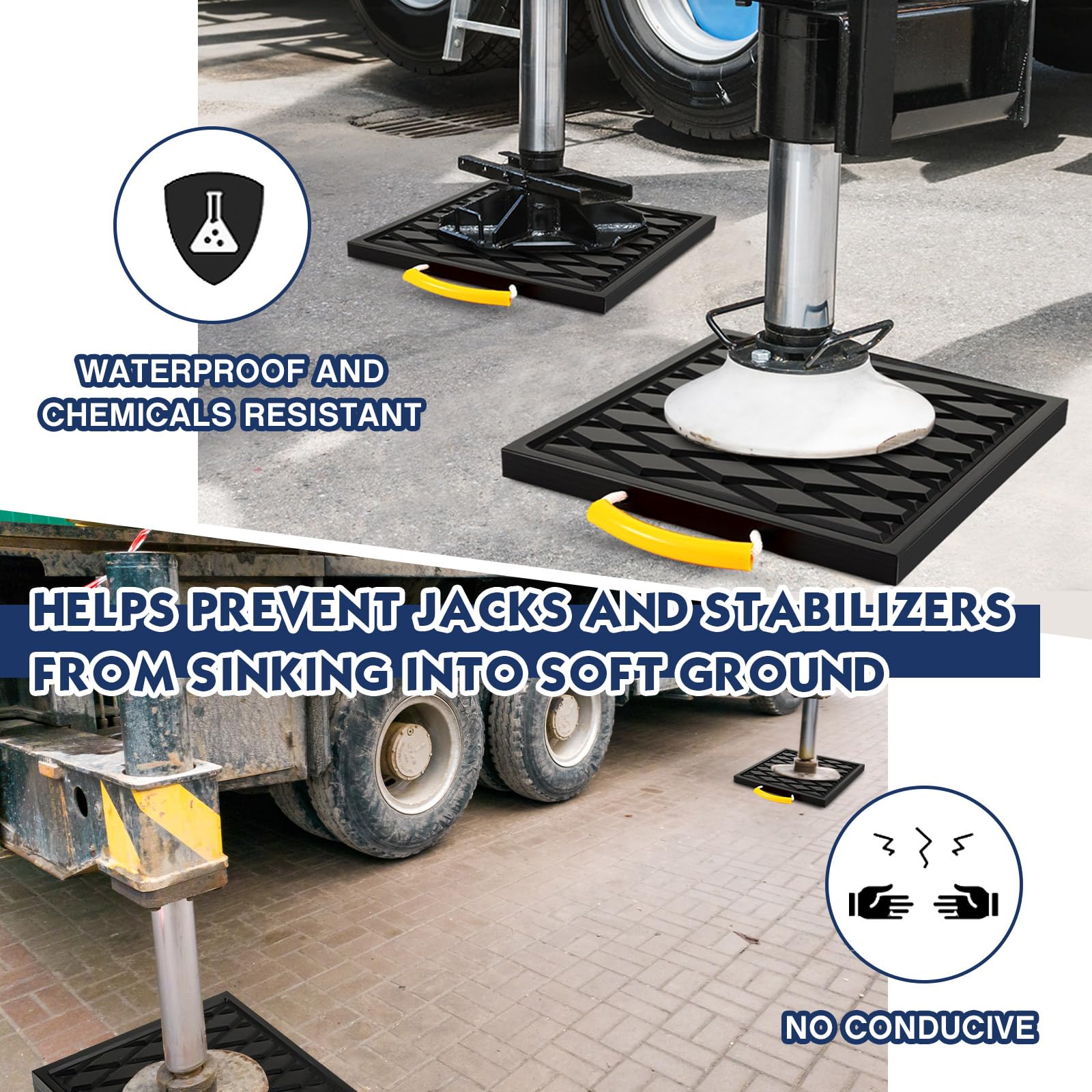 Handle Designs and Wide Applications: In this package, there are 2 RV jack pads with rope handles, convenient for you to take them with, making them widely applied for cranes, trucks, tows, trailers, and aerial equipment