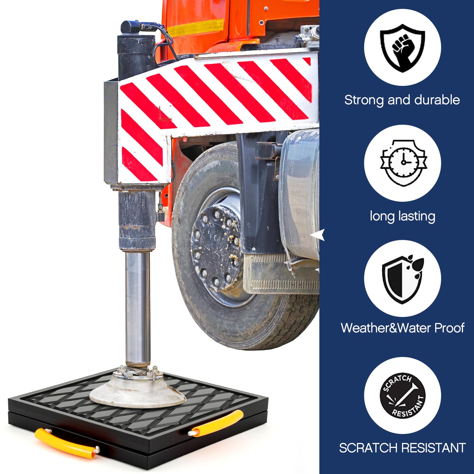 Plastic Material: constructed from quality polyethylene, these 2 RV pads with handles in a package are built to last, and resist wearing and tearing; These pads can withstand heavy loads and provide stability for your vehicle, keeping your vehicle safe and secure
