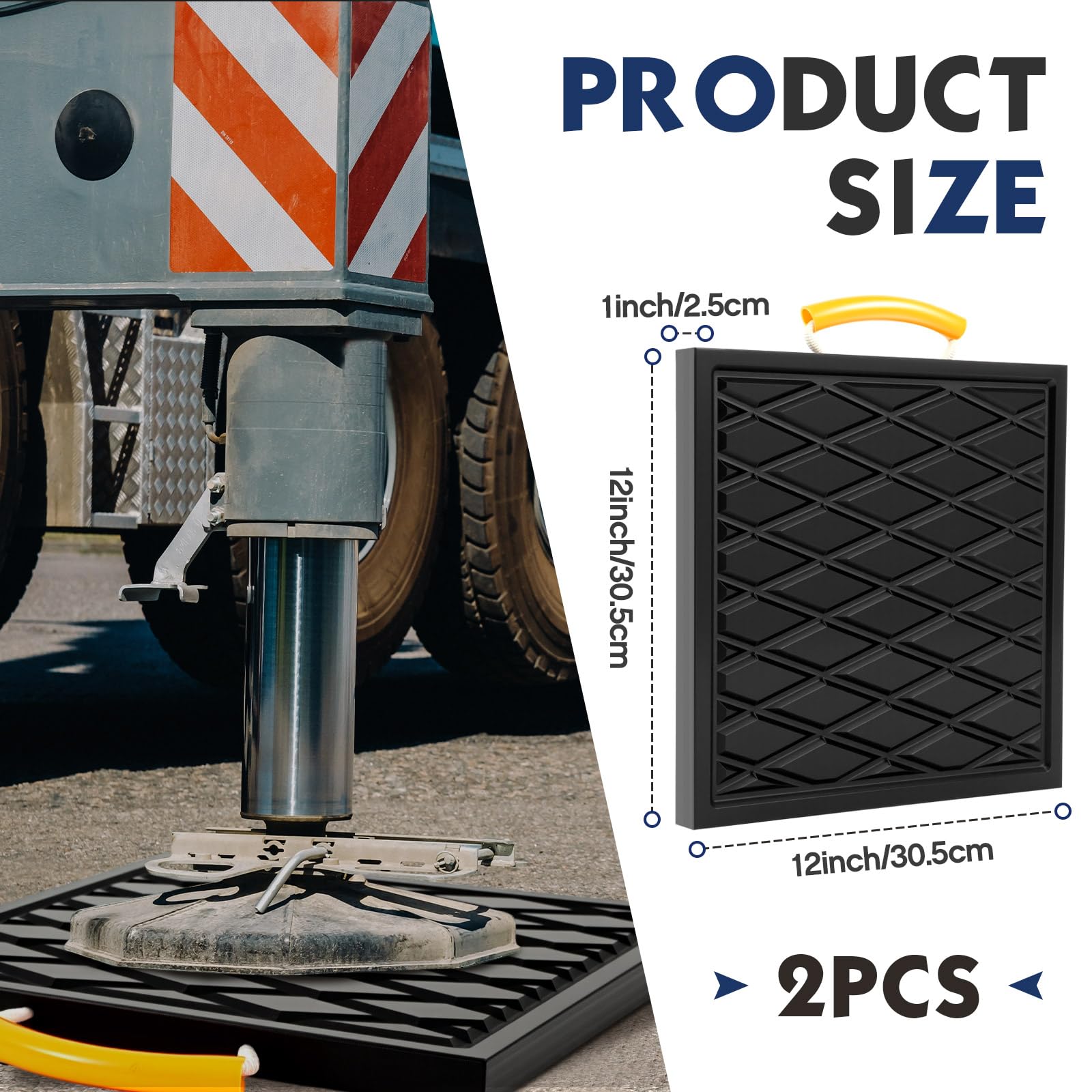 Compact Size: the RV leveling pads with handles measure about 12 x 12 x 1 inches, making them the proper size to provide adequate support and stability for your RV; Their compact size also prevents concrete and other surfaces from heavy equipment