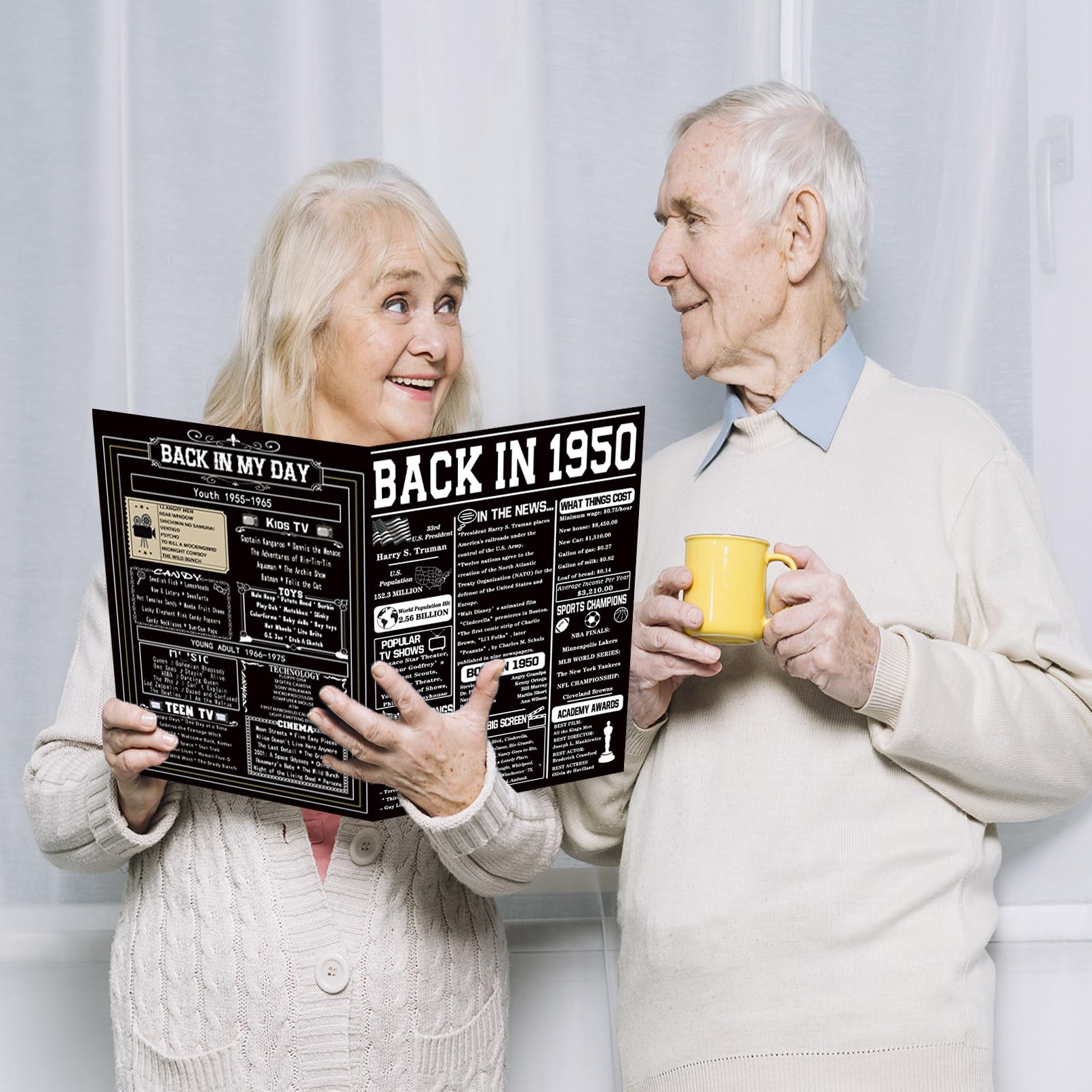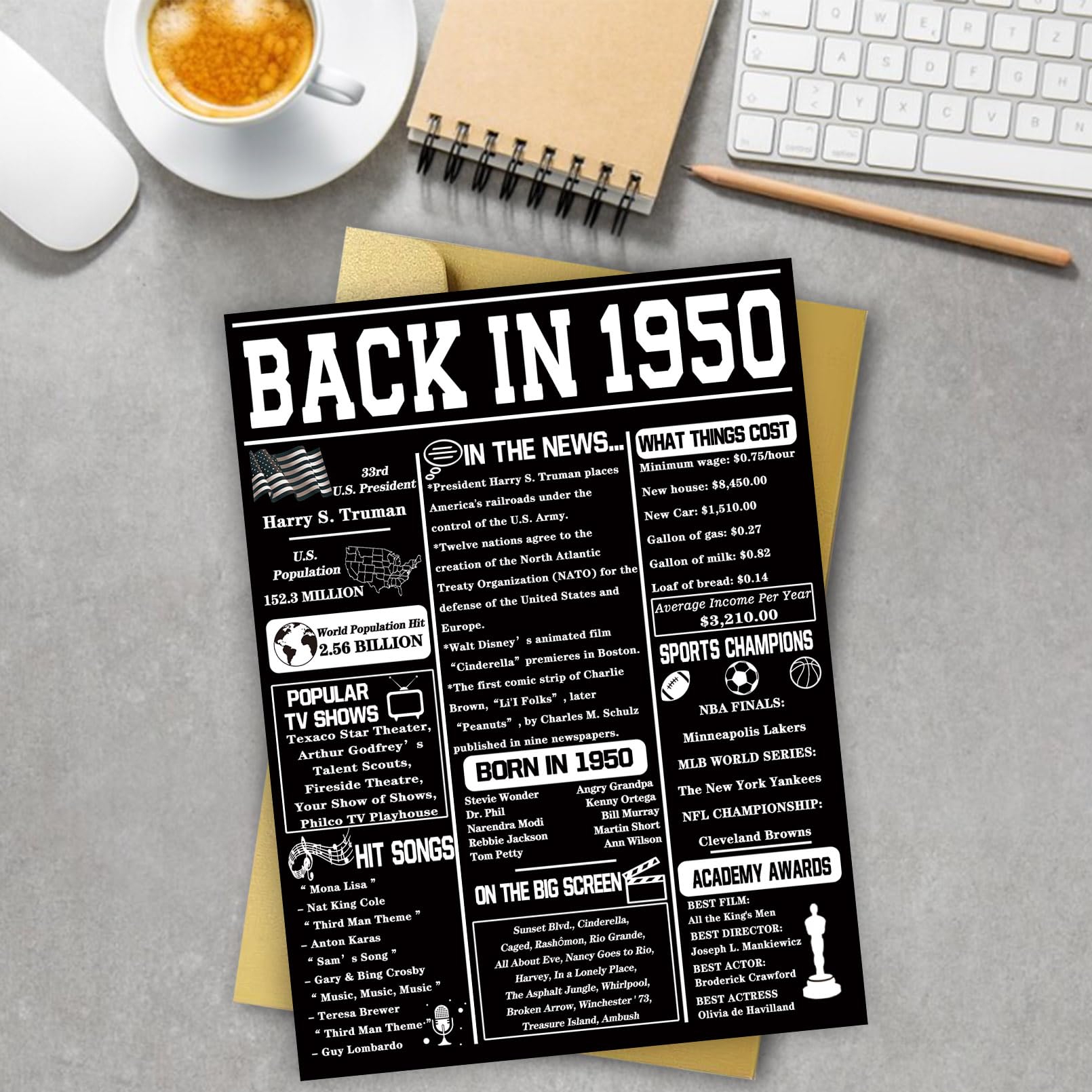 FUN MEMORY - Back in 1950 card contains popular TV shows, famous people born, hit songs, filled with news and events from the past.