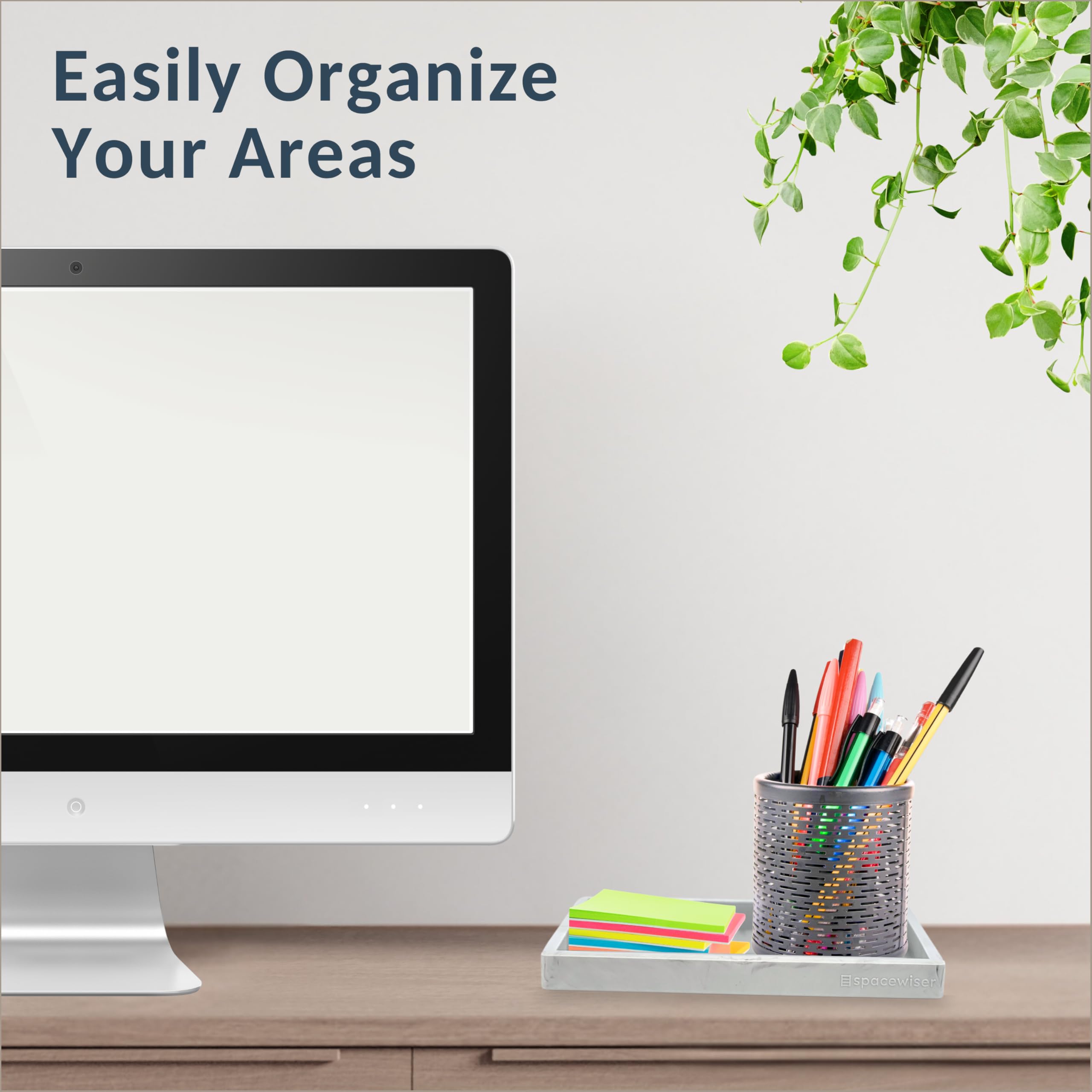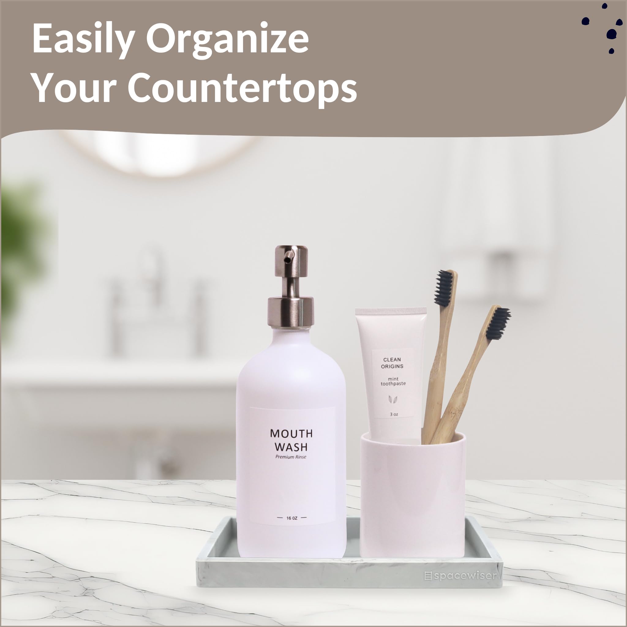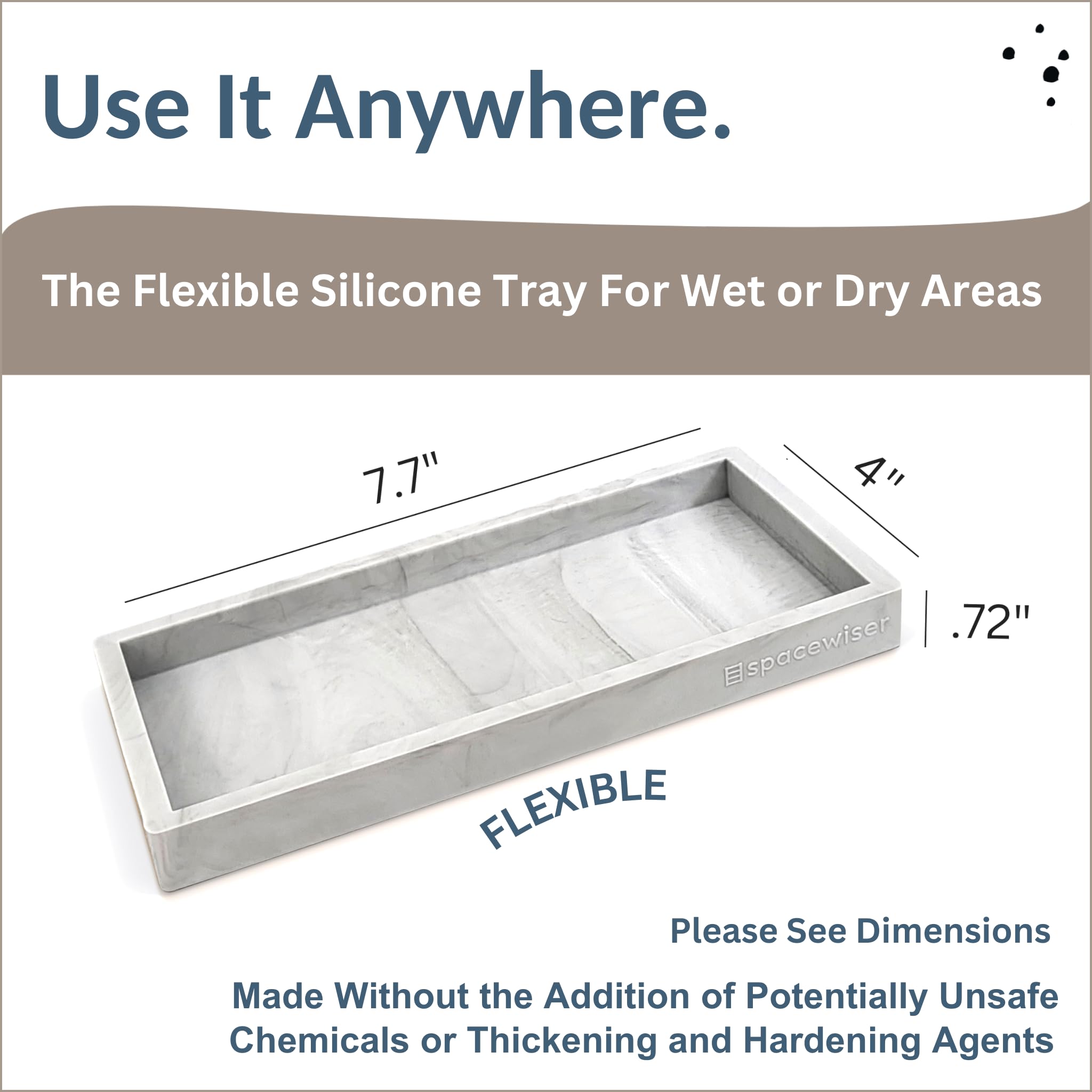 The Details - Small Marble Design Silicone Tray - 7.7” x 4”. Made of flexible but sturdy food grade silicone. This faux marble countertop tray is a perfect marble kitchen sink tray for soap bottles, vanity tray, bathroom sink organizer or kitchen sink organizer. It’s an ideal sponge holder for kitchen sink areas, soap caddy for kitchen sink, kitchen soap dish, and marble sink tray kitchen counter accessory. Spacewiser counter trays help keep your areas organized- a great small silicone mat.