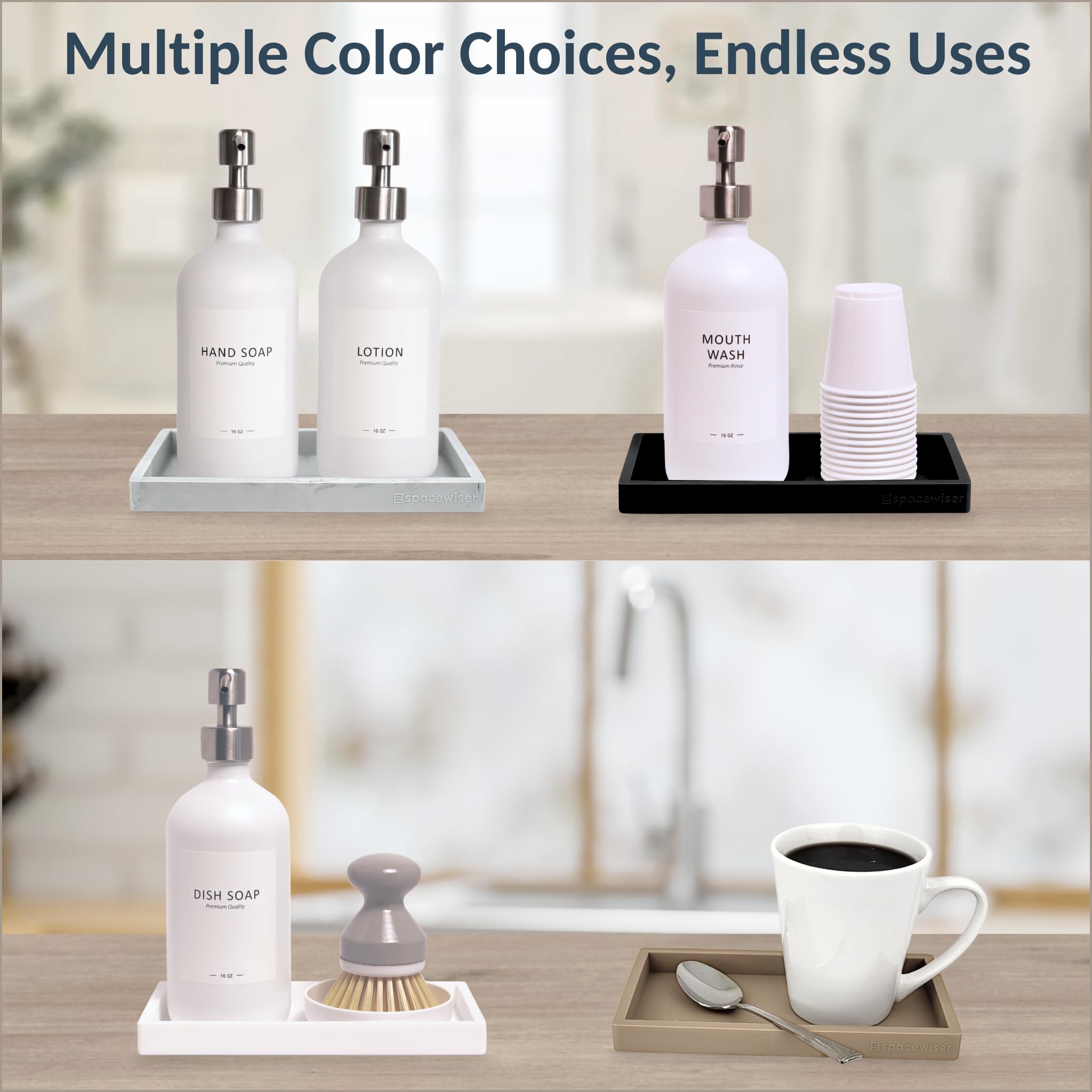 Thoughtfully Sized – The dimensions, combined with the gentle texture, make this small tray perfect as a dish soap tray or hand soap tray- it’s ideal for a set of soap and lotion bottles, or as a ring tray, key tray, trinket tray, or bathroom sink vanity tray.