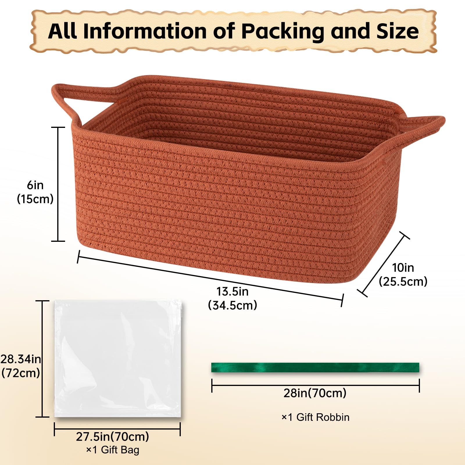 Safe Material: The basket is 13.5*10*6in and made of 100% pure cotton material, no chemical material, no odor, soft and skin friendly. It is no sharp edges that may scratch the floor, especially suitable for children and pets.We are passionate about providing you and your family with a healthy and clean home atmosphere