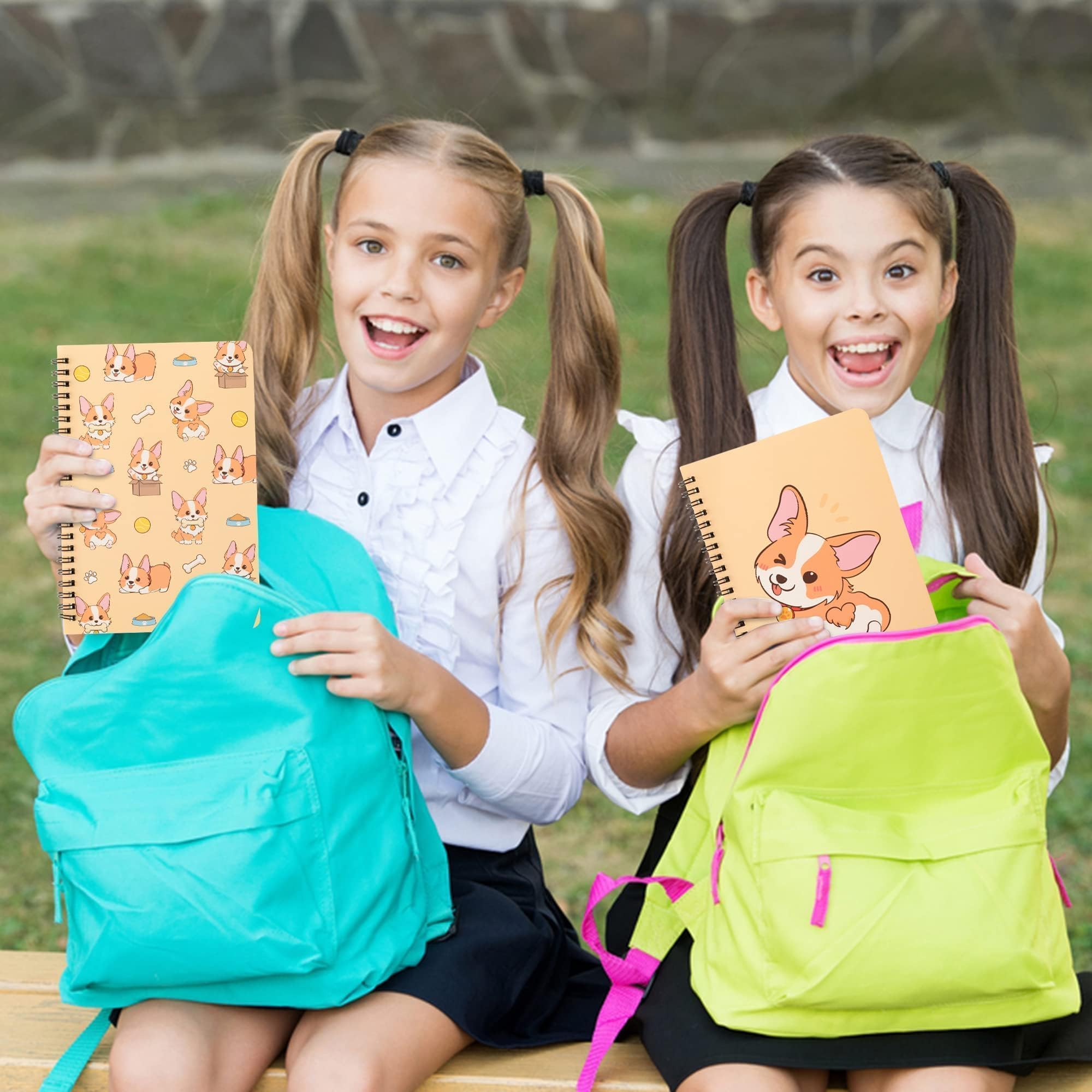 Corgi Spiral Notebook Set: The package contains 2Pcs A5 cute corgi spiral notebooks,100 pages/50 sheets, notebook size: 8.3x 5.5 inch, easily fits in backpacks, and travel bags for easier carrying