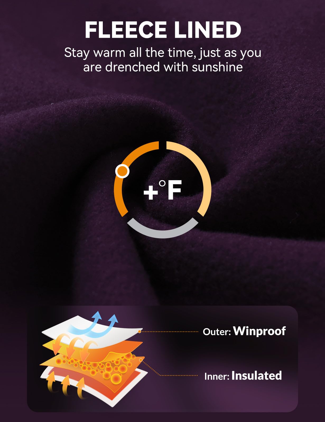 Warm & Water Resistant:Soft fleece inner layer traps heat to keep you warm & comfortable, perfect for cold days under 40°F. Water resistant fabric can handle light rain for a short time or keep dry in snow days and provide wind protection.