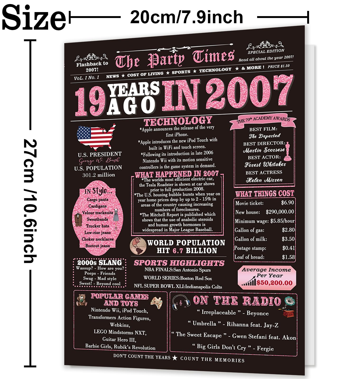 This 19th birthday card is perfect for girls, featuring a "Back in 2007" theme with rose gold accents, making her special day unforgettable.