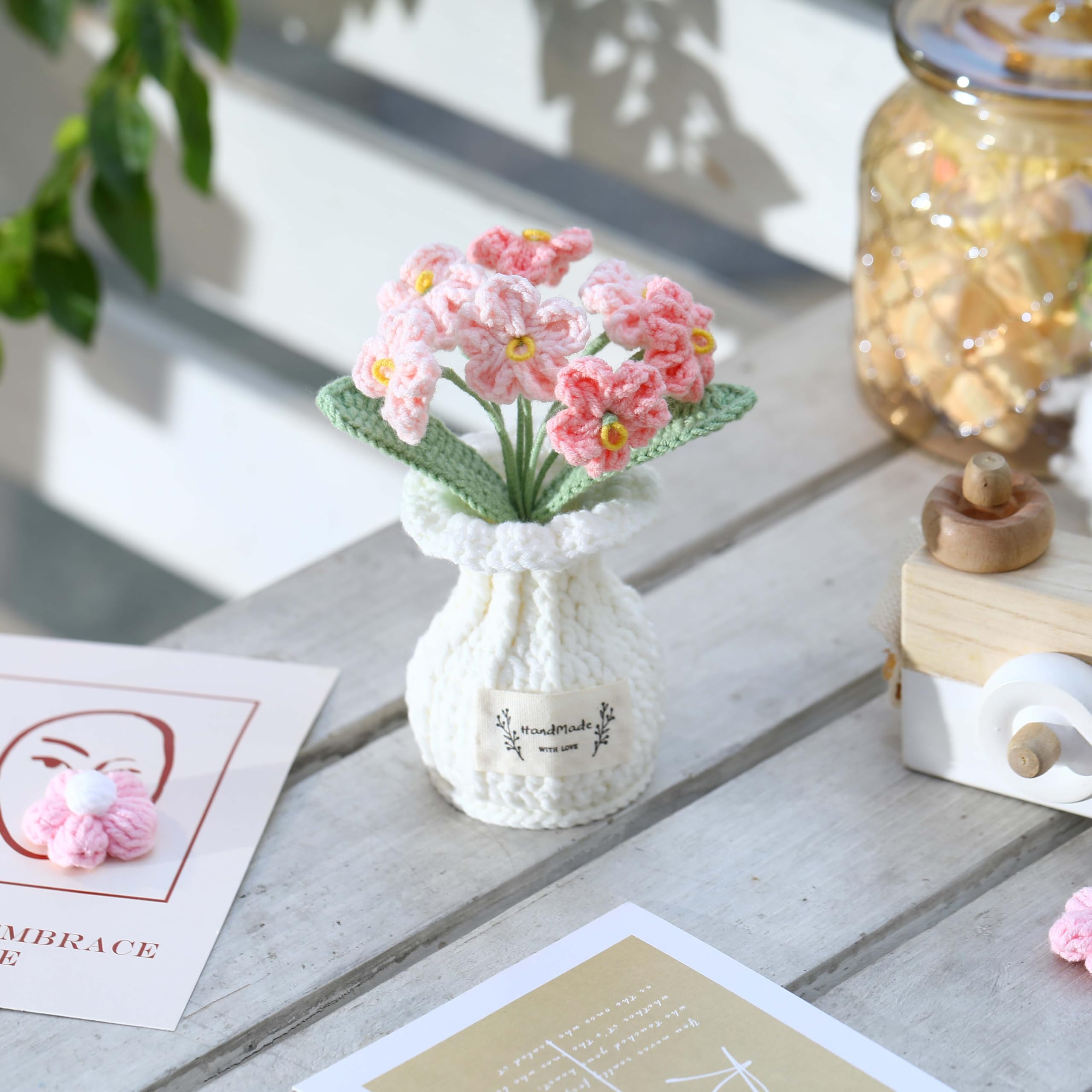 A Meaningful Decorative Accent Designed as a decorative piece rather than a seasonal gift, this forget-me-not crochet plant is perfect for everyday home or office decor, bringing a calm and comforting presence to your surroundings.