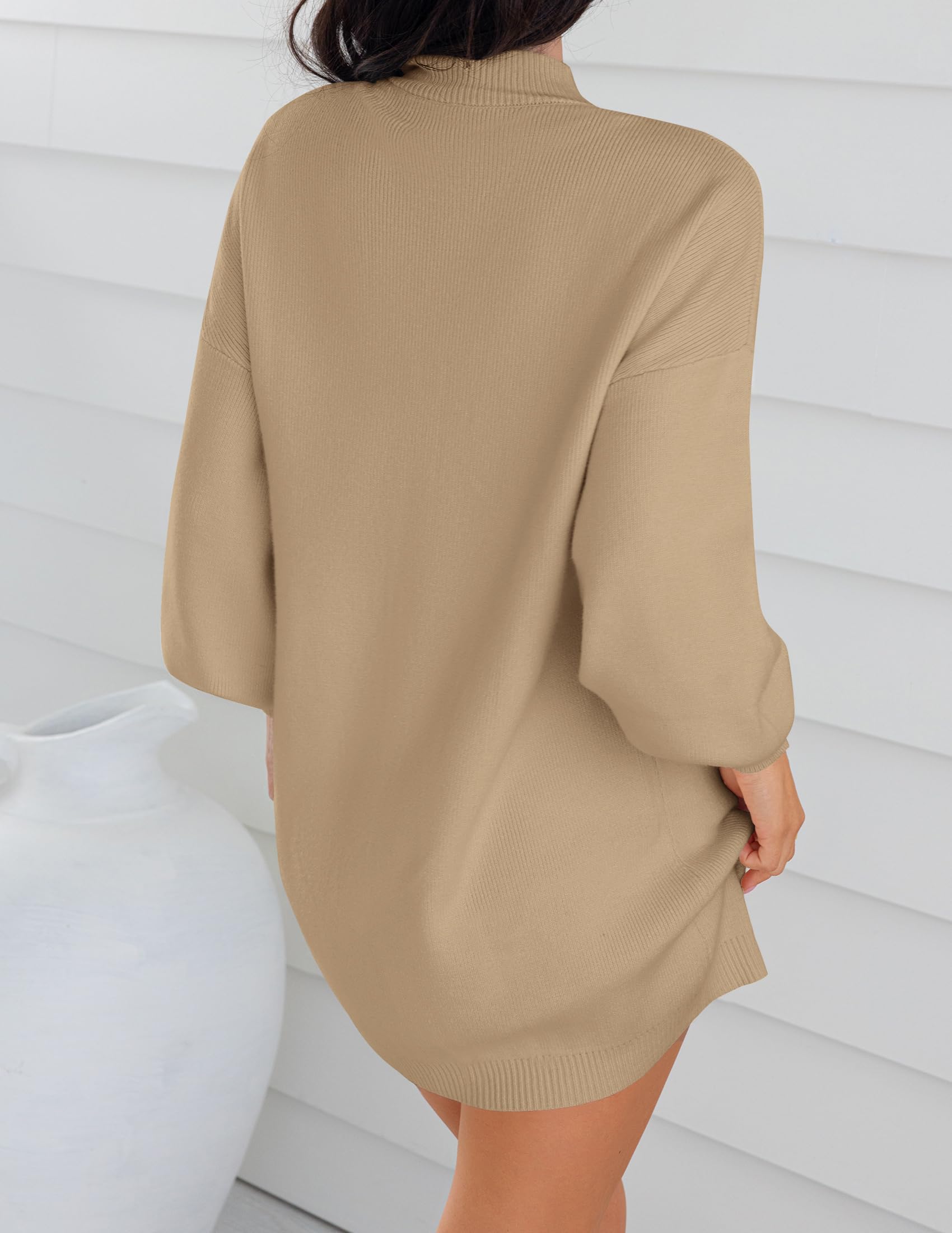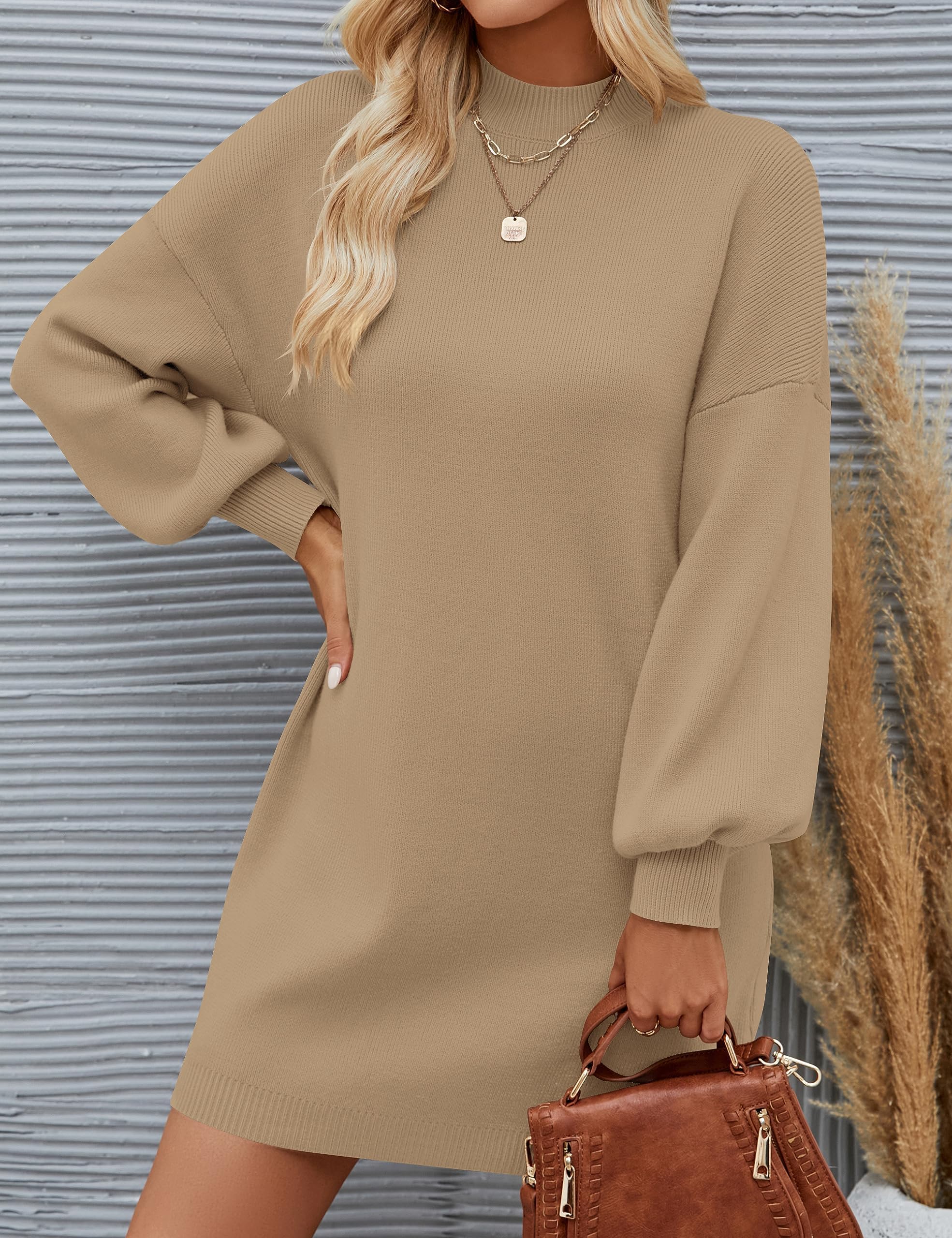 Sweater dresses for women 2025, mini dresses for women, fall sweater dress, lantern long sleeve dress, ribbed knit dress, mock neck, loose fit, classic solid color, above knee length, slouchy and baggy style, maternity dress, winter dress, cocktail party dress