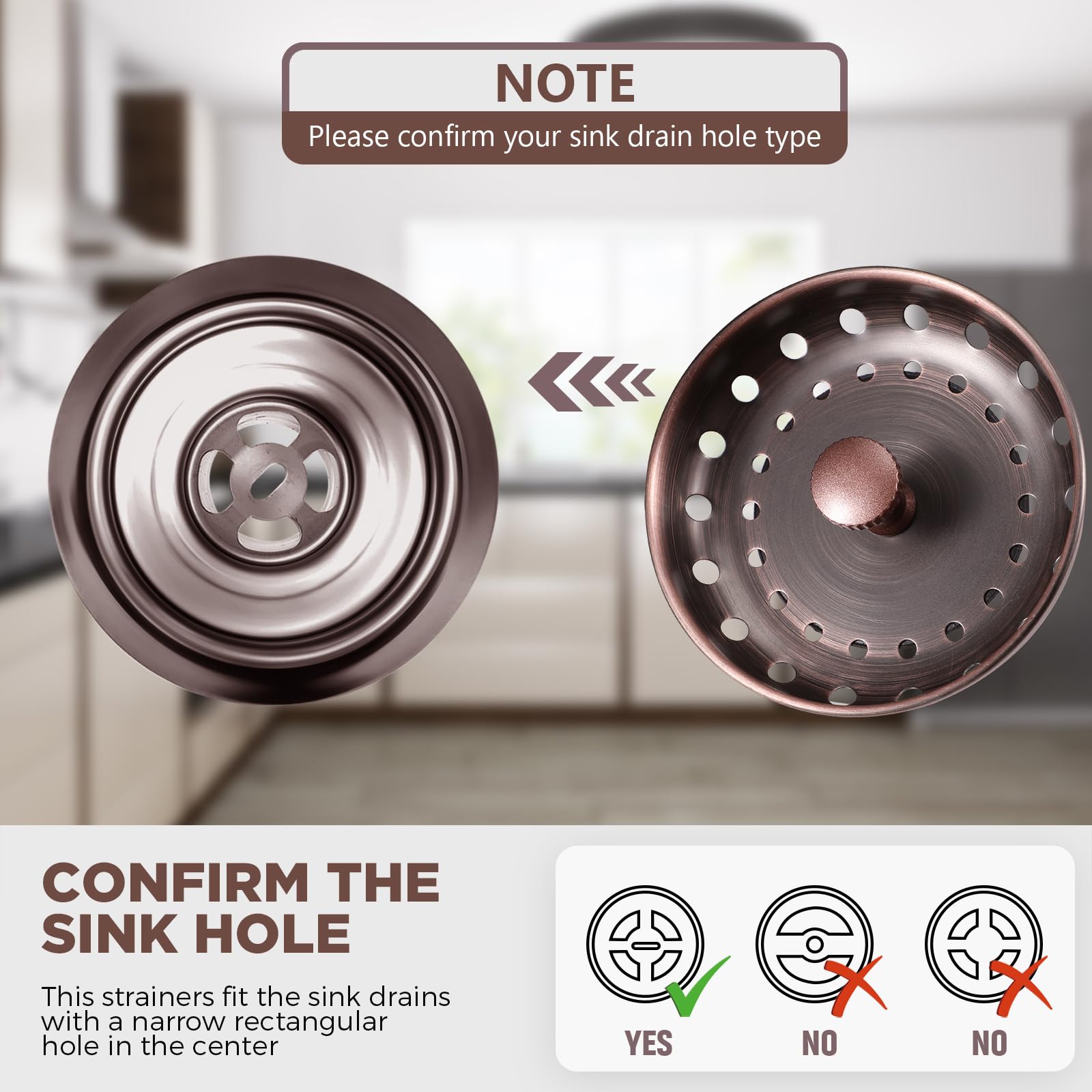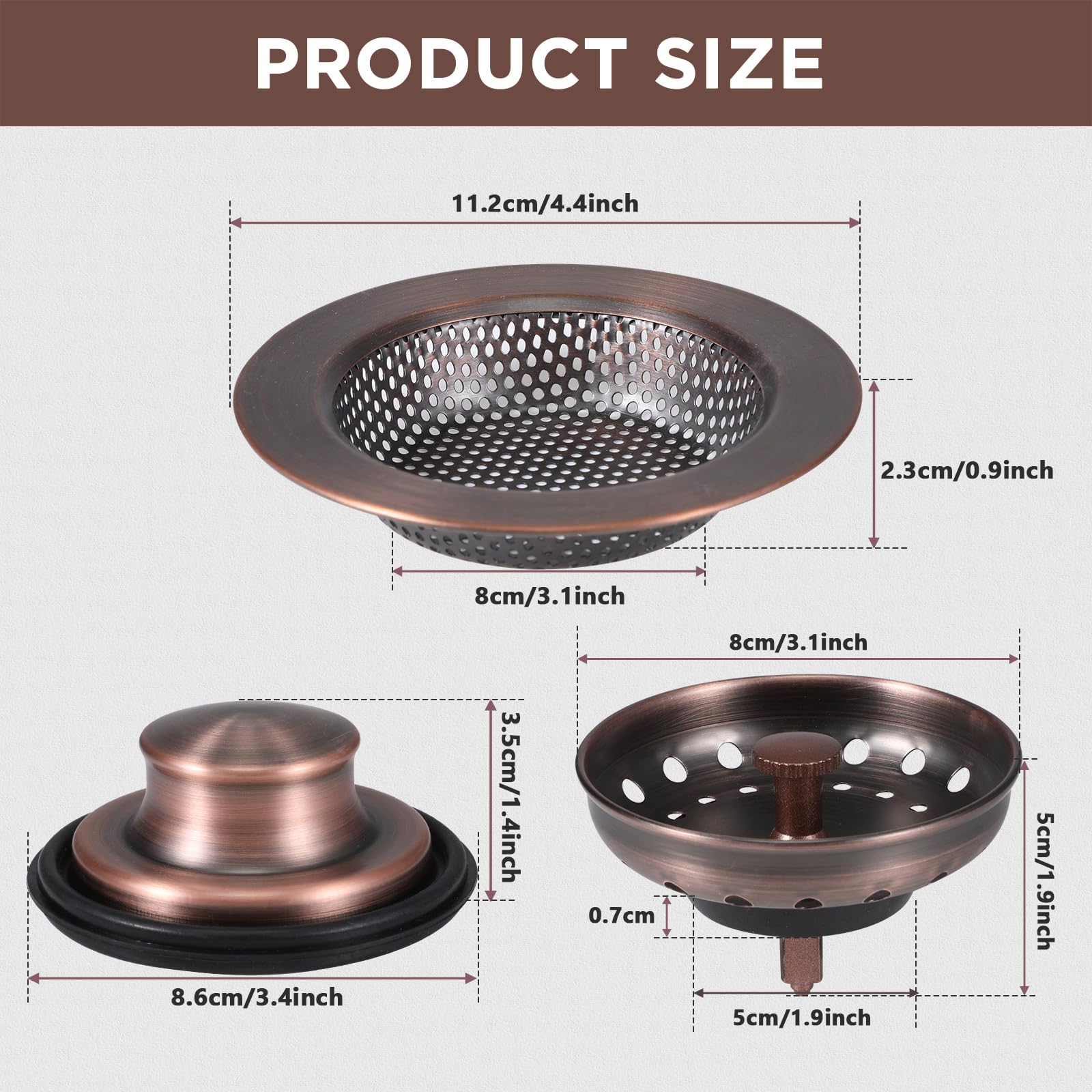 Universal Fit: the garbage disposal stopper and sink strain are in universal sizes, suitable for most 3-1/2 inch kitchen sink drains or old sink filters in United States; And the kitchen sink filter sieve is universal which fits most sink drains and garbage disposals; Note: the strainer fit the sink drains with a narrow rectangular hole in the center, please confirm your sink drain hole size before order